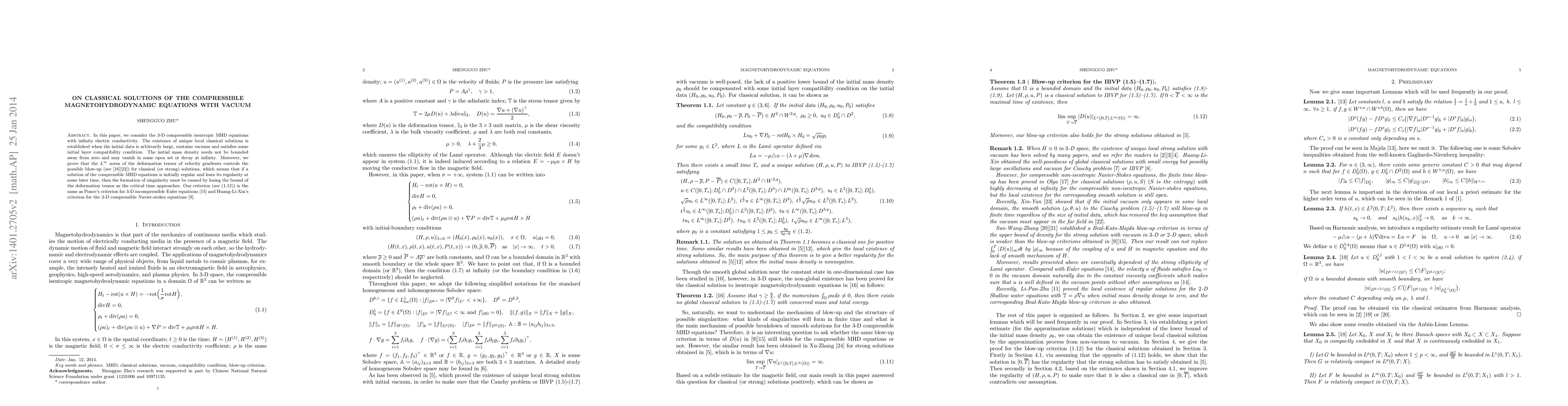 In this paper, we consider the 3-D compressible isentropic MHD equations with infinity electric conductivity. The existence of unique local classical solutions is firstly established when the initial data is arbitrarily large, contains vacuum and satisfies some initial layer compatibility condition. The initial mass density needs not be bounded away from zero and may vanish in some open set. Moreover, we prove that the $L^\infty$ norm of the deformation tensor of velocity gradients controls the possible blow-up (see \cite{olga}\cite{zx}) for classical (or strong) solutions, which means that if a solution of the compressible MHD equations is initially regular and loses its regularity at some later time, then the formation of singularity must be caused by the losing the bound of the deformtion tensor as the critical time approches. Our result (see (1.12) is the same as Ponce's criterion for $3$-D incompressible Euler equations \cite{pc} and Huang-Li-Xin's blow-up criterion for the $3$-D compressible Navier-stokes equations \cite{hup}.