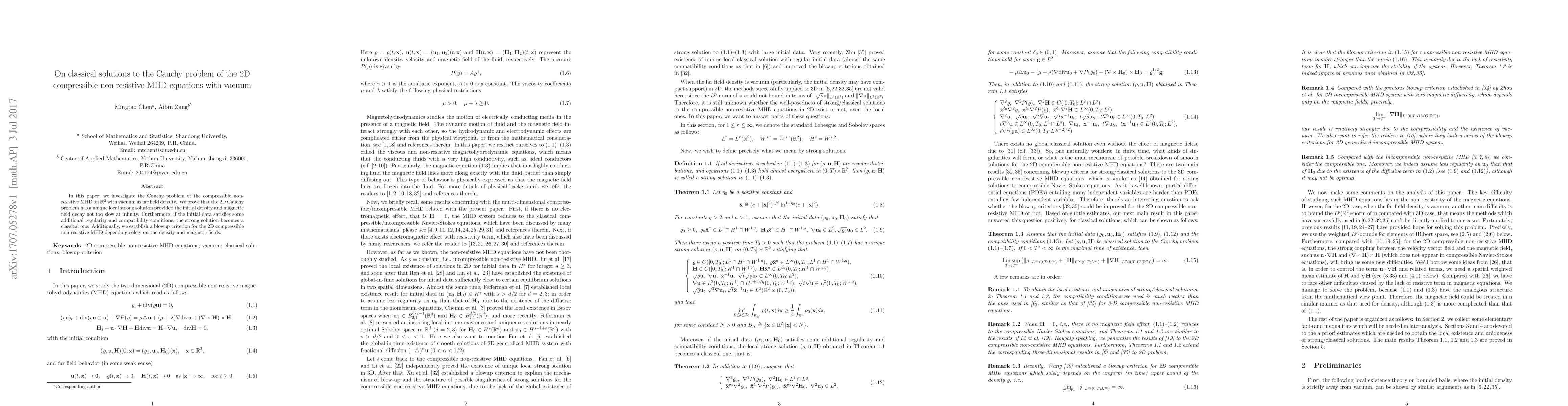 In this paper, we investigate the Cauchy problem of the compressible non-resistive MHD on $\mathbb{R}^2$ with vacuum as far field density. We prove that the 2D Cauchy problem has a unique local strong solution provided the initial density and magnetic field decay not too slow at infinity. Furthermore, if the initial data satisfies some additional regularity and compatibility conditions, the strong solution becomes a classical one. Additionally, we establish a blowup criterion for the 2D compressible non-resistive MHD depending solely on the density and magnetic fields.