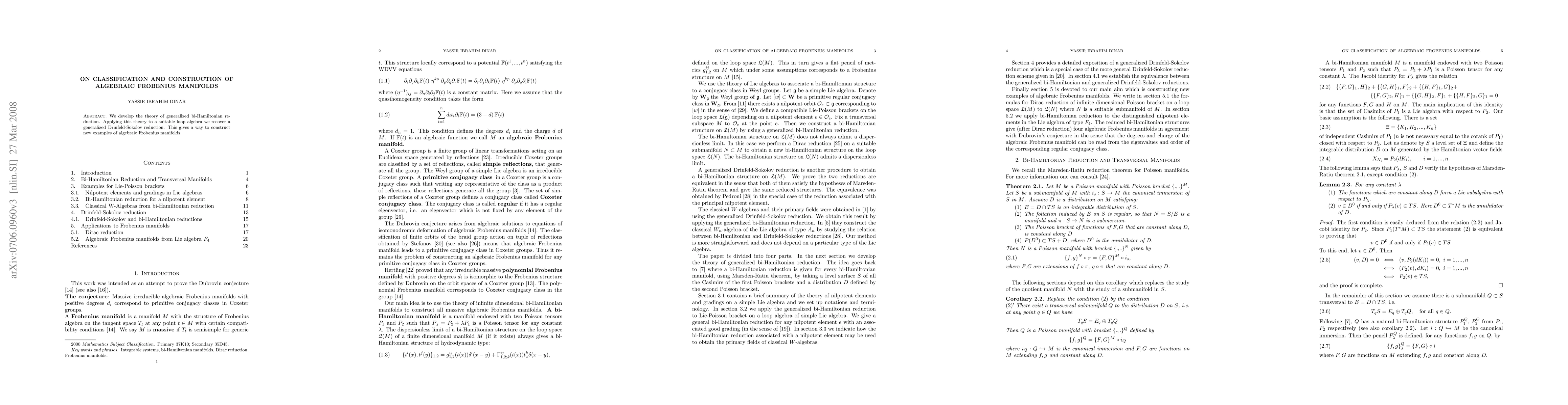 Researchers develop a new method for constructing algebraic Frobenius manifolds using generalized bi-Hamiltonian reduction, offering a way to create new examples of these complex geometric structures.