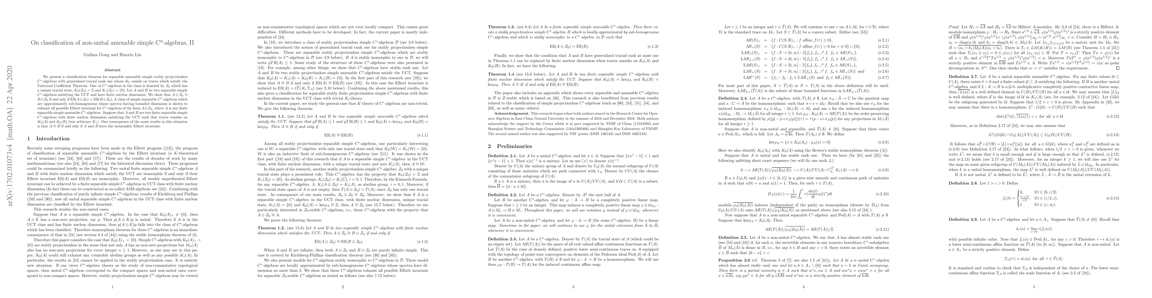 This paper establishes a classification theorem for amenable simple C*-algebras with specific properties, showing that Elliott invariants can uniquely identify isomorphic algebras under certain conditions.
