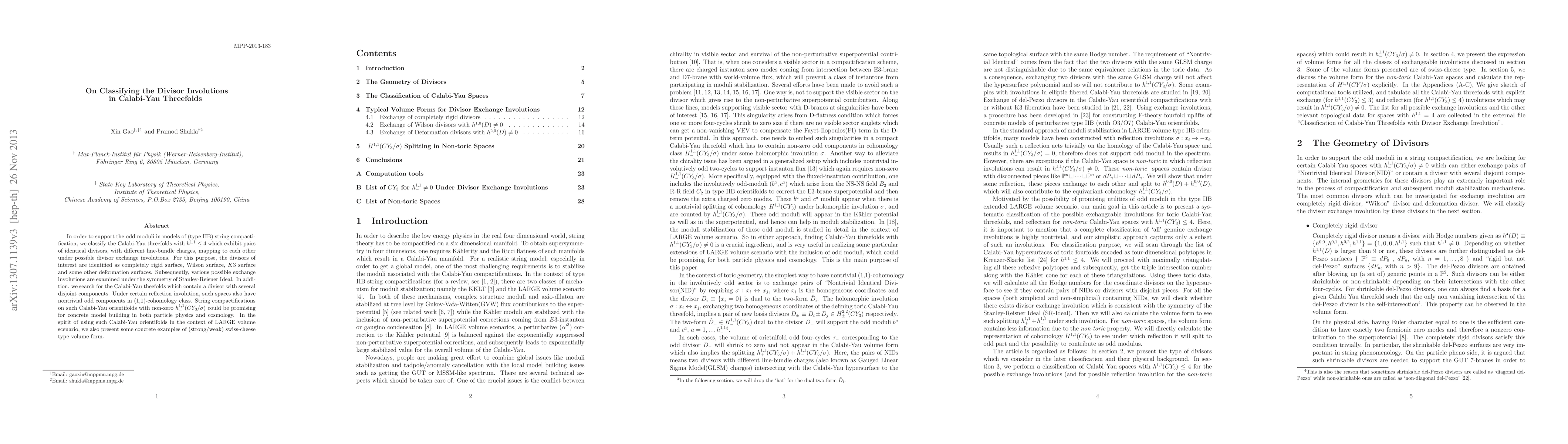 In order to support the odd moduli in models of (type IIB) string compactification, we classify the Calabi-Yau threefolds with h^{1,1}<=4 which exhibit pairs of identical divisors, with different line-bundle charges, mapping to each other under possible divisor exchange involutions. For this purpose, the divisors of interest are identified as completely rigid surface, Wilson surface, K3 surface and some other deformation surfaces. Subsequently, various possible exchange involutions are examined under the symmetry of Stanley-Reisner Ideal. In addition, we search for the Calabi-Yau theefolds which contain a divisor with several disjoint components. Under certain reflection involution, such spaces also have nontrivial odd components in (1,1)-cohomology class. String compactifications on such Calabi-Yau orientifolds with non-zero h^{1,1}_-(CY_3/\sigma) could be promising for concrete model building in both particle physics and cosmology. In the spirit of using such Calabi-Yau orientifolds in the context of LARGE volume scenario, we also present some concrete examples of (strong/weak) swiss-cheese type volume form.
