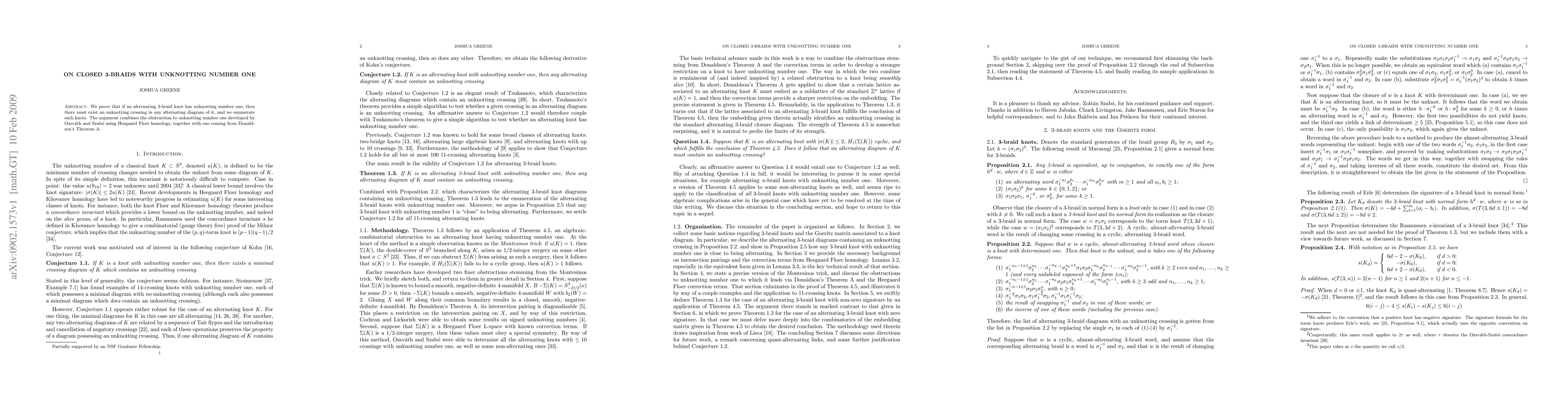 This paper proves that alternating 3-braid knots with unknotting number one must have at least one unknotting crossing in any of their alternating diagrams. It combines Heegaard Floer homology and Donaldson's Theorem A to enumerate such knots.