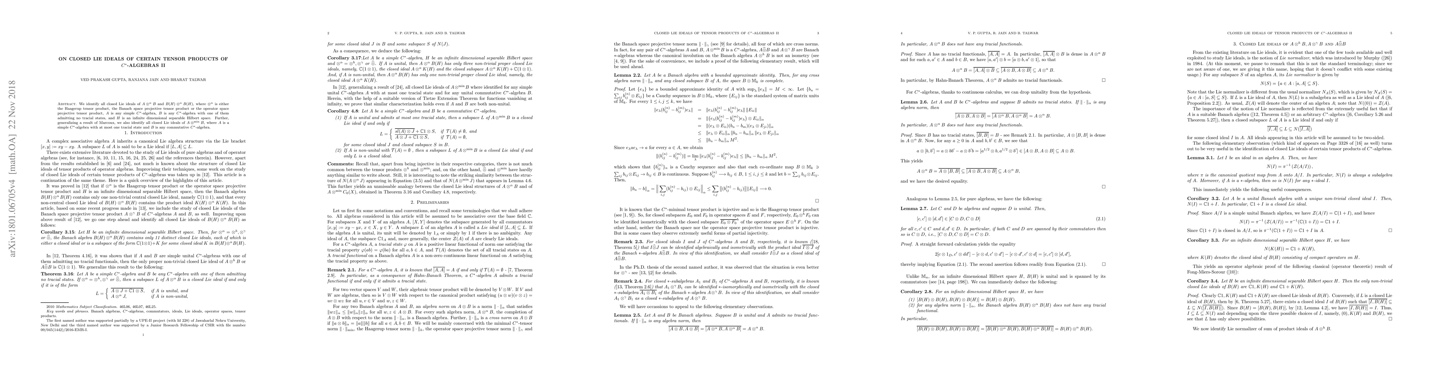 This paper identifies all closed Lie ideals of various tensor products of C*-algebras using different tensor product types, including simple C*-algebras and separable Hilbert spaces. It extends results to include specific cases involving minimal tensor products and commutative C*-algebras.