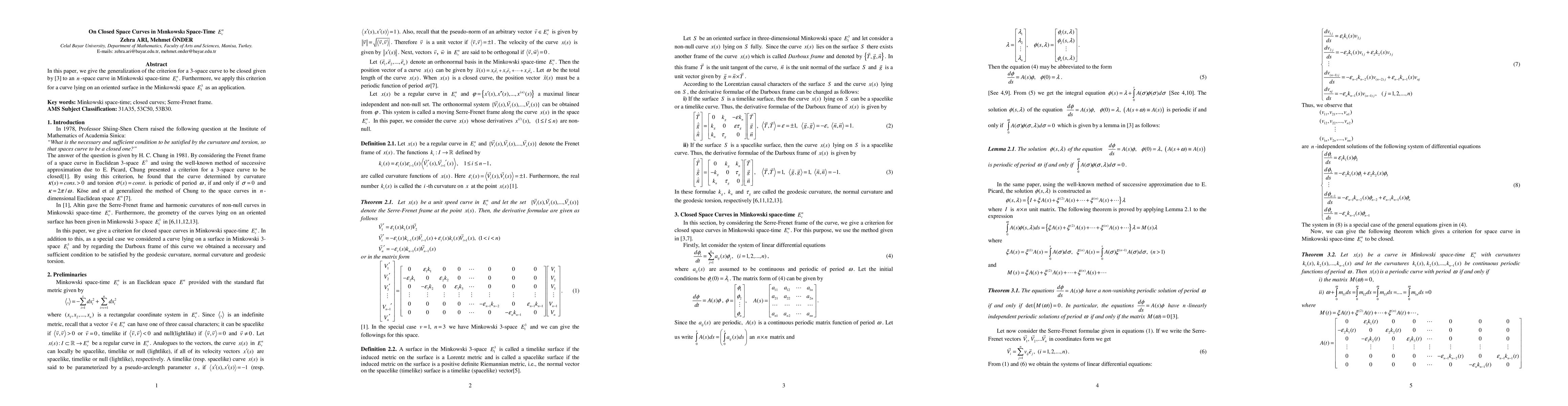 This paper generalizes a criterion for closed curves in Minkowski space-time to n-space curves, offering a method for identifying closed curves on oriented surfaces in higher-dimensional spaces.