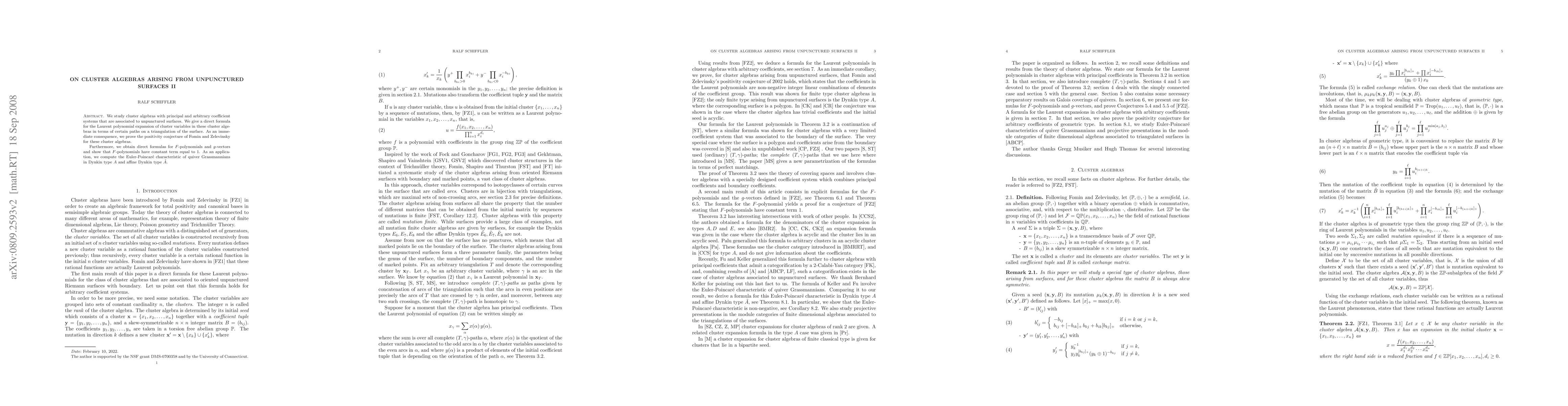 This paper provides a direct formula for the Laurent polynomial expansion of cluster variables in cluster algebras arising from unpunctured surfaces, proving the positivity conjecture for these algebras. It also derives formulas for F-polynomials and g-vectors, and computes the Euler-Poincaré characteristic for quiver Grassmannians in Dynkin type $A$ and affine Dynkin type $\tilde A$.