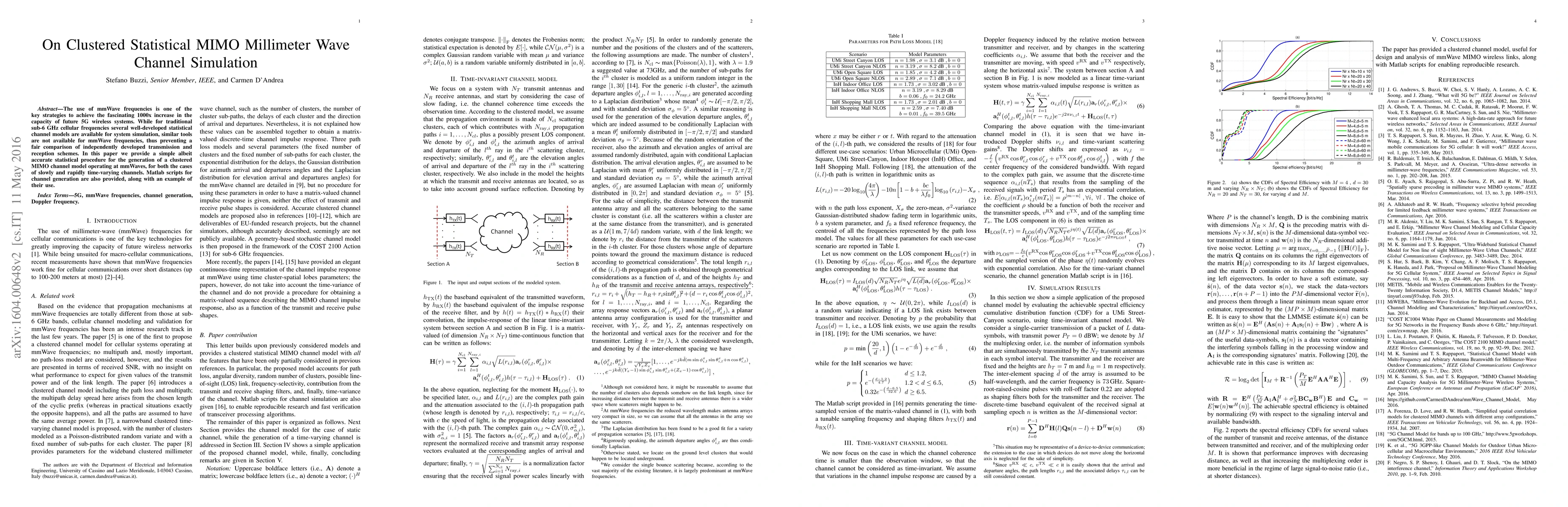 A new statistical channel model for mmWave frequencies is developed to simulate clustered MIMO channels, enabling fair comparison of transmission schemes.