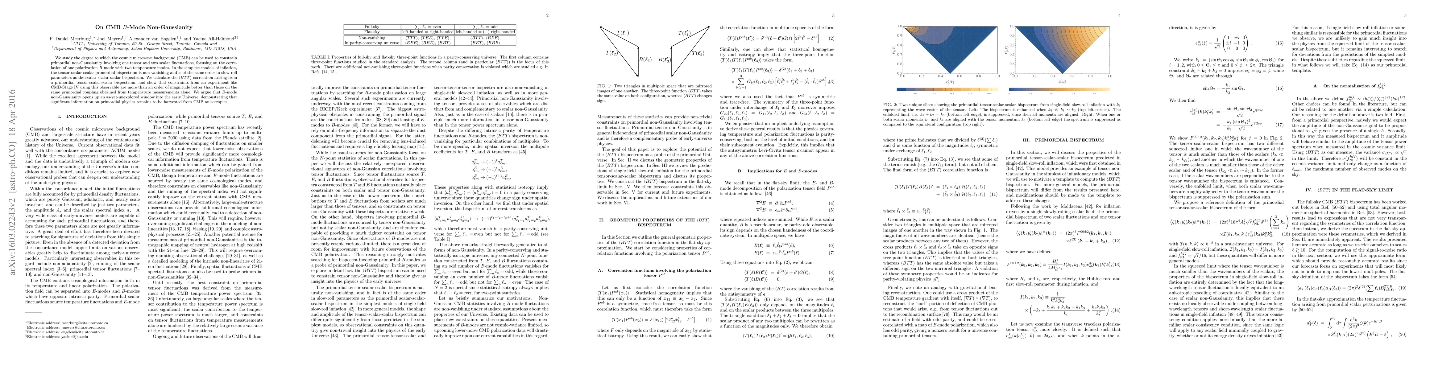 We study the degree to which the cosmic microwave background (CMB) can be used to constrain primordial non-Gaussianity involving one tensor and two scalar fluctuations, focusing on the correlation of one polarization $B$ mode with two temperature modes. In the simplest models of inflation, the tensor-scalar-scalar primordial bispectrum is non-vanishing and is of the same order in slow-roll parameters as the scalar-scalar-scalar bispectrum. We calculate the $\langle BTT\rangle$ correlation arising from a primordial tensor-scalar-scalar bispectrum, and show that constraints from an experiment like CMB-Stage IV using this observable are more than an order of magnitude better than those on the same primordial coupling obtained from temperature measurements alone. We argue that $B$-mode non-Gaussianity opens up an as-yet-unexplored window into the early Universe, demonstrating that significant information on primordial physics remains to be harvested from CMB anisotropies.