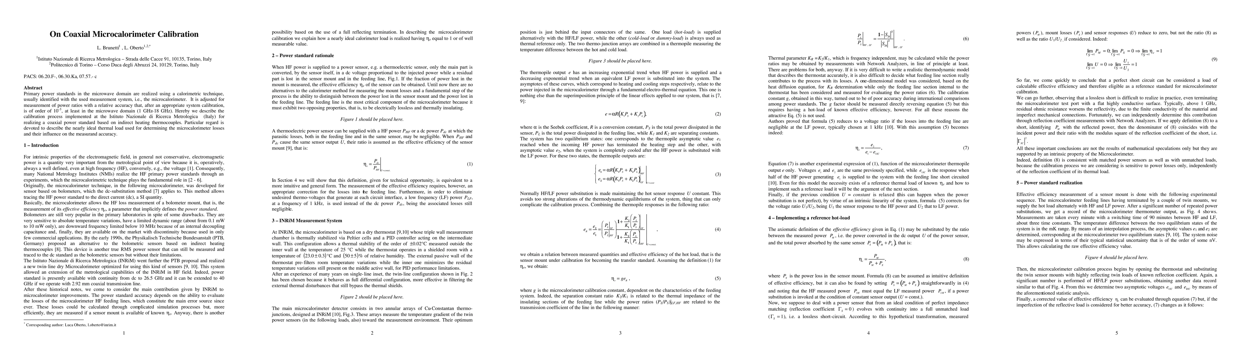 Primary power standards in the microwave domain are realized using a calorimetric technique, usually identified with the used measurement system, i.e., the microcalorimeter. It is adjusted for measurement of power ratios with a relative accuracy that, after an appropriate system calibration, is of order of 10^-3, at least in the microwave domain (1 GHz-18 GHz). Hereby we describe the calibration process implemented at the Istituto Nazionale di Ricerca Metrologica (Italy) for realizing a coaxial power standard based on indirect heating thermocouples. Particular regard is devoted to describe the nearly ideal thermal load used for determining the microcalorimeter losses and their influence on the measurand accuracy.