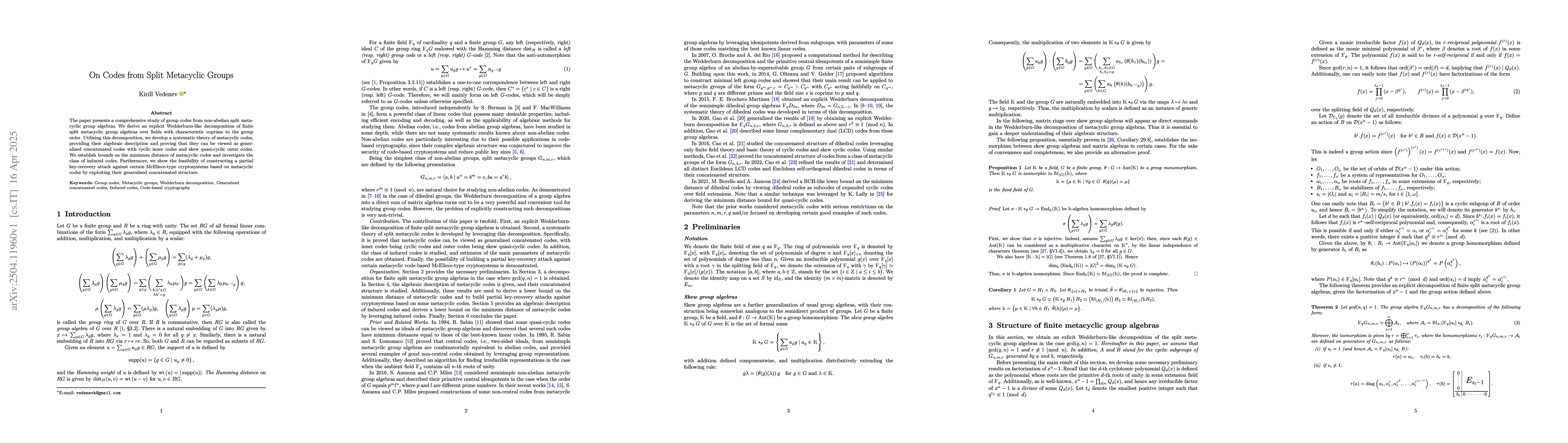 This work presents the first systematic theory of metacyclic codes and demonstrates their vulnerability to a partial key-recovery attack, distinguishing it from previous research on abelian group codes.