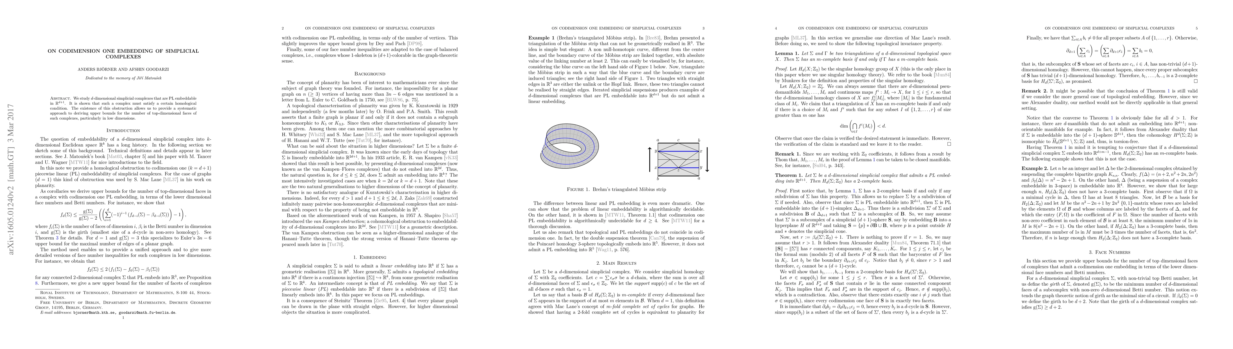 This paper investigates $d$-dimensional simplicial complexes embeddable in $\mathbb{R}^{d+1}$ and demonstrates a homological condition they must satisfy. It provides a method to derive upper bounds on the number of top-dimensional faces for such complexes, especially in lower dimensions.