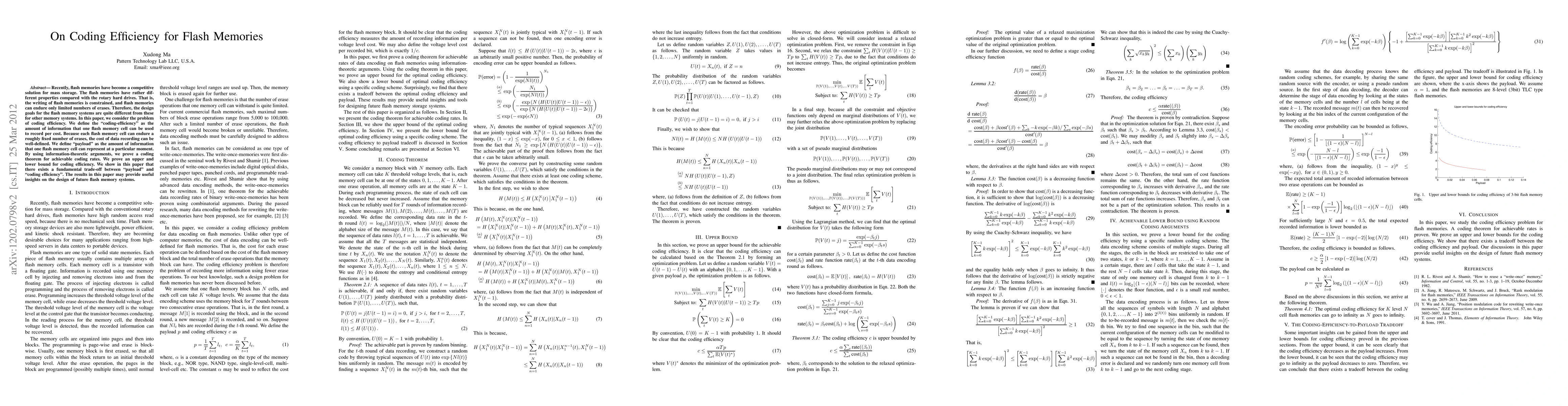 Recently, flash memories have become a competitive solution for mass storage. The flash memories have rather different properties compared with the rotary hard drives. That is, the writing of flash memories is constrained, and flash memories can endure only limited numbers of erases. Therefore, the design goals for the flash memory systems are quite different from these for other memory systems. In this paper, we consider the problem of coding efficiency. We define the "coding-efficiency" as the amount of information that one flash memory cell can be used to record per cost. Because each flash memory cell can endure a roughly fixed number of erases, the cost of data recording can be well-defined. We define "payload" as the amount of information that one flash memory cell can represent at a particular moment. By using information-theoretic arguments, we prove a coding theorem for achievable coding rates. We prove an upper and lower bound for coding efficiency. We show in this paper that there exists a fundamental trade-off between "payload" and "coding efficiency". The results in this paper may provide useful insights on the design of future flash memory systems.