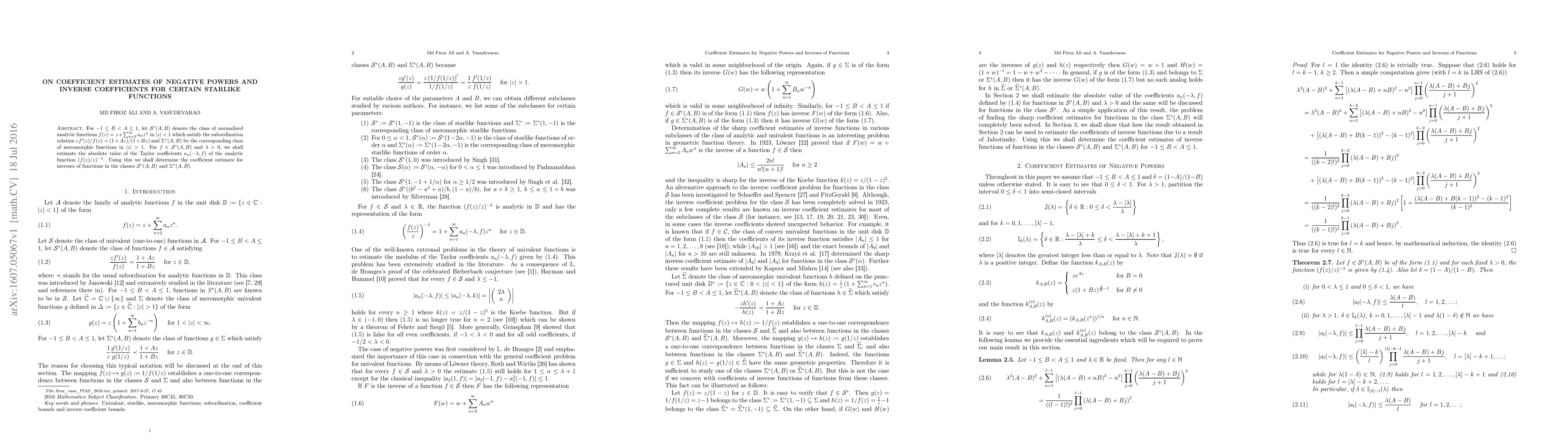This research paper estimates the absolute value of Taylor coefficients for functions in specific classes of analytic and meromorphic functions, determining coefficient estimates for inverses of these functions.