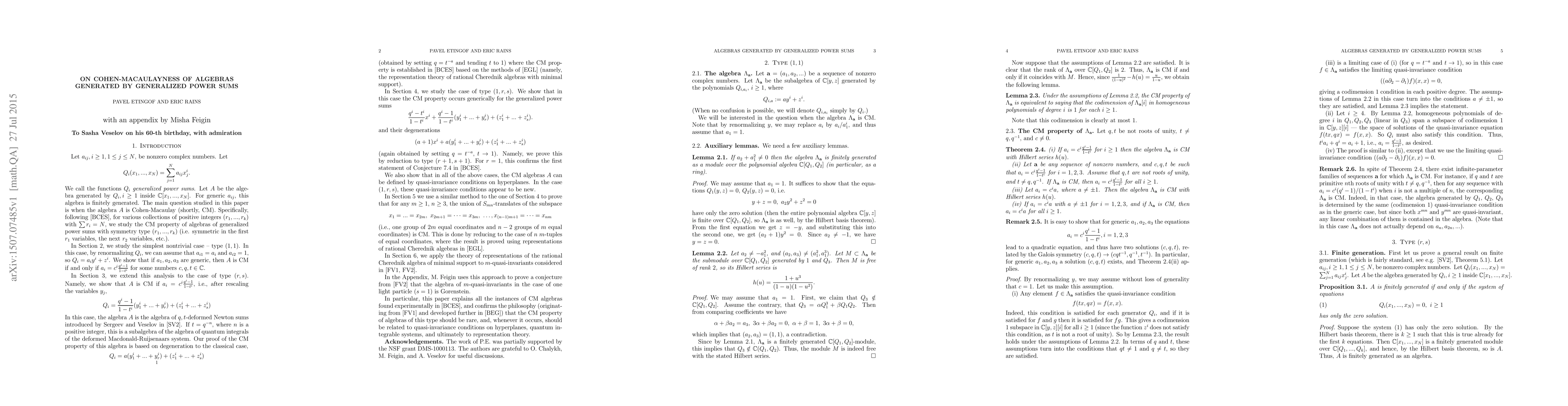 This research paper explores when subalgebras of polynomial algebras generated by generalized power sums are Cohen-Macaulay, a property found rarely and linked to quantum integrability and Cherednik algebras' representation theory. The study confirms Cohen-Macaulayness for specific $q,t$-deformed power sum algebras, proving a previous conjecture. Representation-theoretic techniques are also applied to m-quasi-invariants of deformed Calogero-Moser systems, with Hilbert series for these quasi-invariants computed in an appendix.