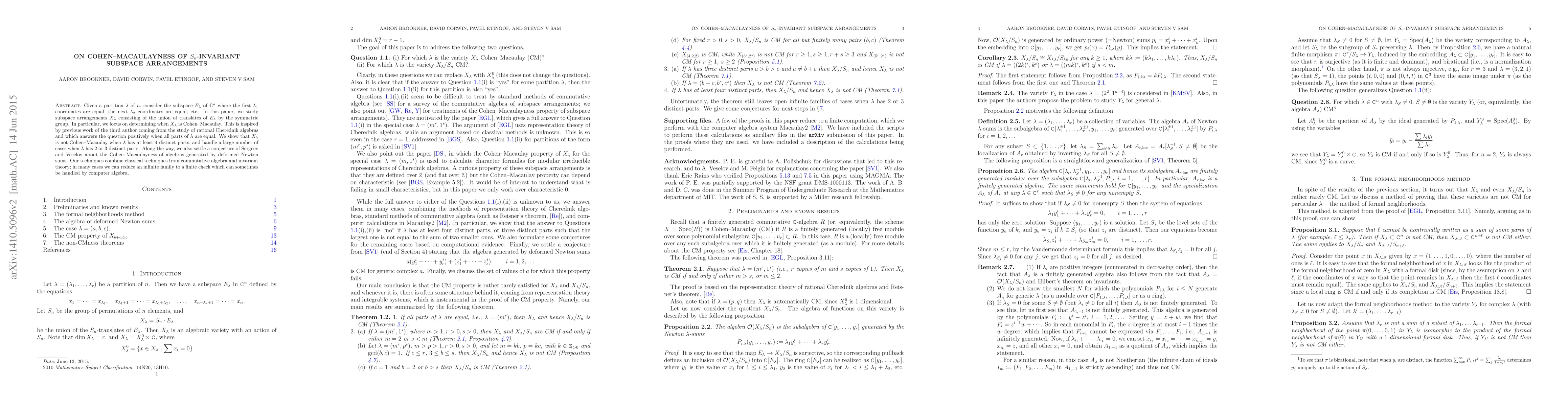 Given a partition $\lambda$ of n, consider the subspace $E_\lambda$ of $C^n$ where the first $\lambda_1$ coordinates are equal, the next $\lambda_2$ coordinates are equal, etc. In this paper, we study subspace arrangements $X_\lambda$ consisting of the union of translates of $E_\lambda$ by the symmetric group. In particular, we focus on determining when $X_\lambda$ is Cohen-Macaulay. This is inspired by previous work of the third author coming from the study of rational Cherednik algebras and which answers the question positively when all parts of $\lambda$ are equal. We show that $X_\lambda$ is not Cohen-Macaulay when $\lambda$ has at least 4 distinct parts, and handle a large number of cases when $\lambda$ has 2 or 3 distinct parts. Along the way, we also settle a conjecture of Sergeev and Veselov about the Cohen-Macaulayness of algebras generated by deformed Newton sums. Our techniques combine classical techniques from commutative algebra and invariant theory, in many cases we can reduce an infinite family to a finite check which can sometimes be handled by computer algebra.