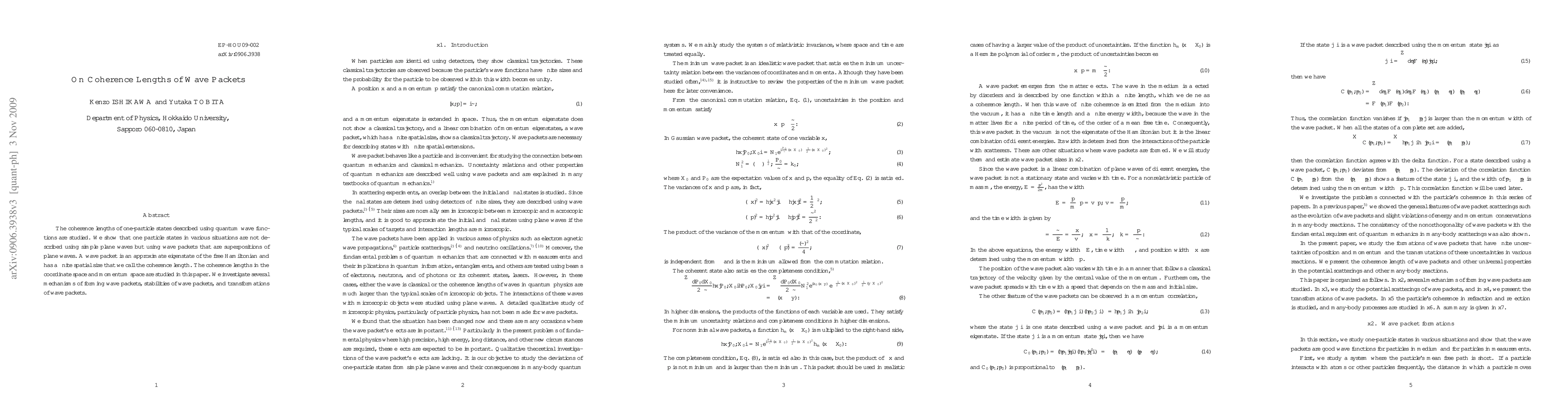 This paper explores the coherence lengths of one-particle quantum states, demonstrating that they are represented by wave packets—superpositions of plane waves—rather than simple plane waves. The study investigates the spatial and momentum space coherence lengths, mechanisms of wave packet formation, their stability, and transformations.