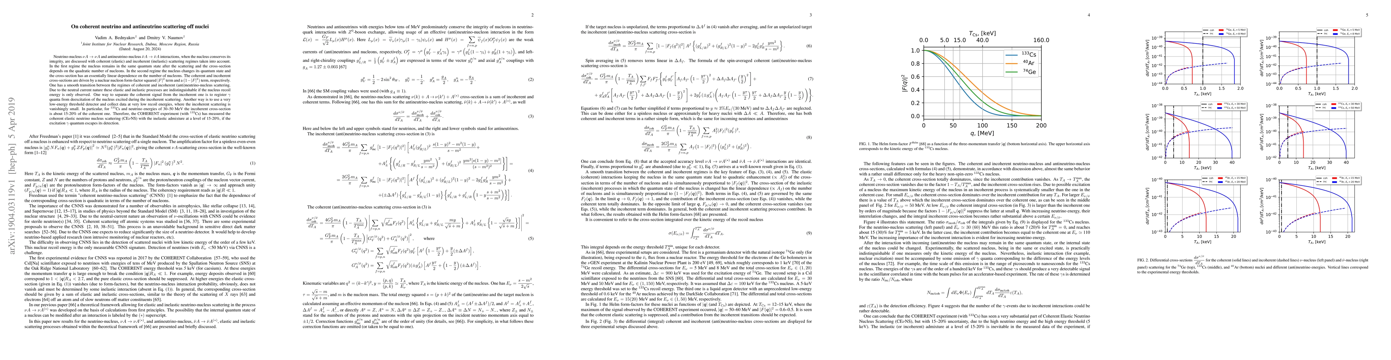 This paper discusses coherent and incoherent neutrino and antineutrino scattering off nuclei, highlighting the distinction between elastic (coherent) and inelastic (incoherent) scattering regimes. The coherent regime preserves nuclear integrity, while the incoherent regime alters it, with different cross-section dependencies on nucleon numbers.
