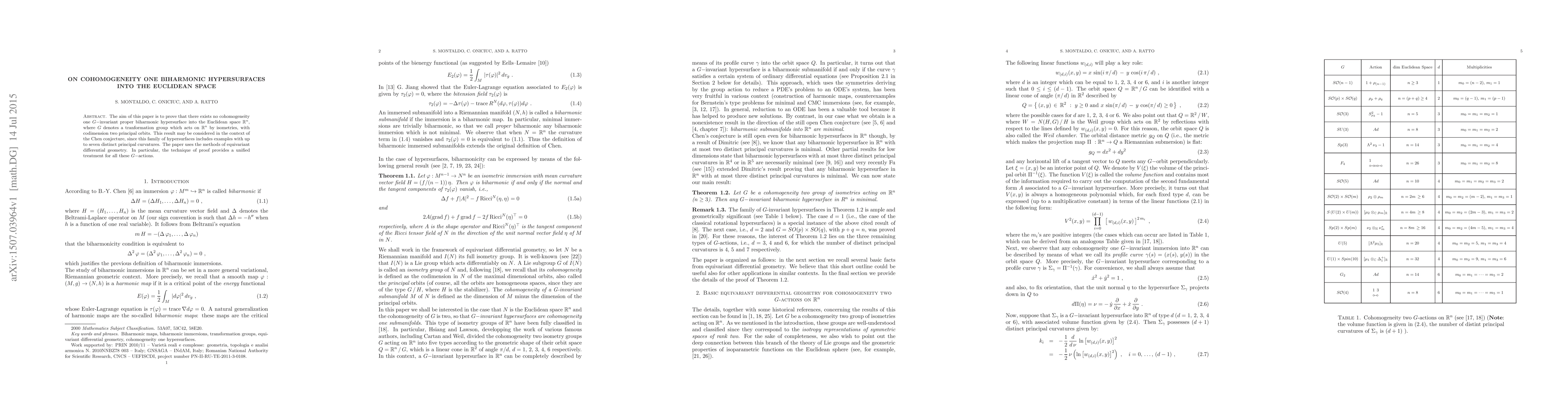 The aim of this paper is to prove that there exists no cohomogeneity one $G-$invariant proper biharmonic hypersurface into the Euclidean space ${\mathbb R}^n$, where $G$ denotes a tranformation group which acts on ${\mathbb R}^n$ by isometries, with codimension two principal orbits. This result may be considered in the context of the Chen conjecture, since this family of hypersurfaces includes examples with up to seven distinct principal curvatures. The paper uses the methods of equivariant differential geometry. In particular, the technique of proof provides a unified treatment for all these $G-$actions.