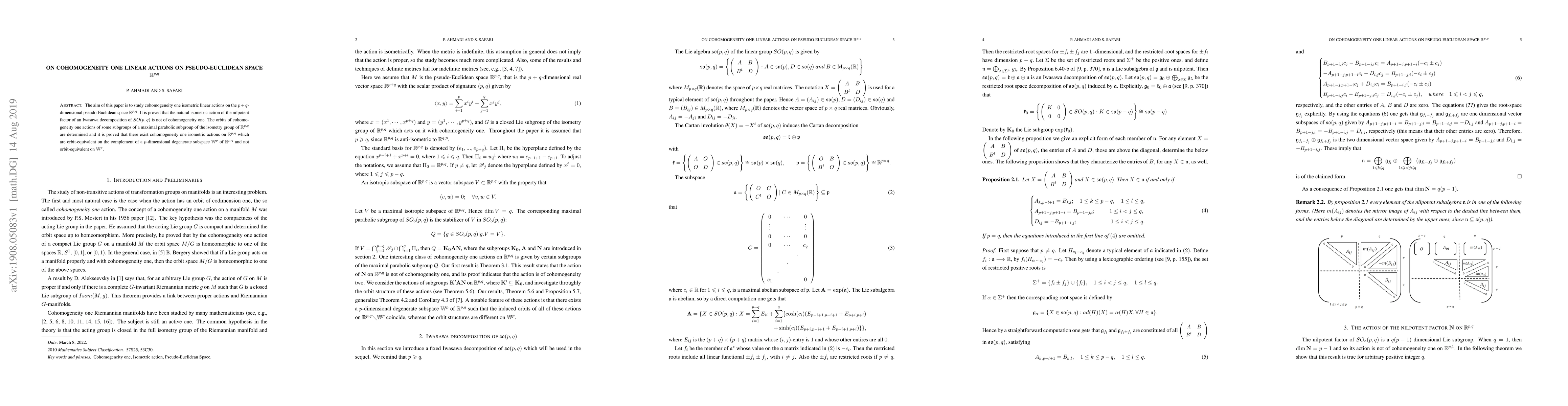 This paper investigates cohomogeneity one isometric linear actions on the pseudo-Euclidean space $\mathbb{R}^{p,q}$, proving that the nilpotent factor of an Iwasawa decomposition of $SO(p,q)$ does not exhibit such actions. It also determines the orbits of cohomogeneity one actions by certain subgroups of a maximal parabolic subgroup of the isometry group, showing the existence of orbit-equivalent actions on the complement of a degenerate subspace.