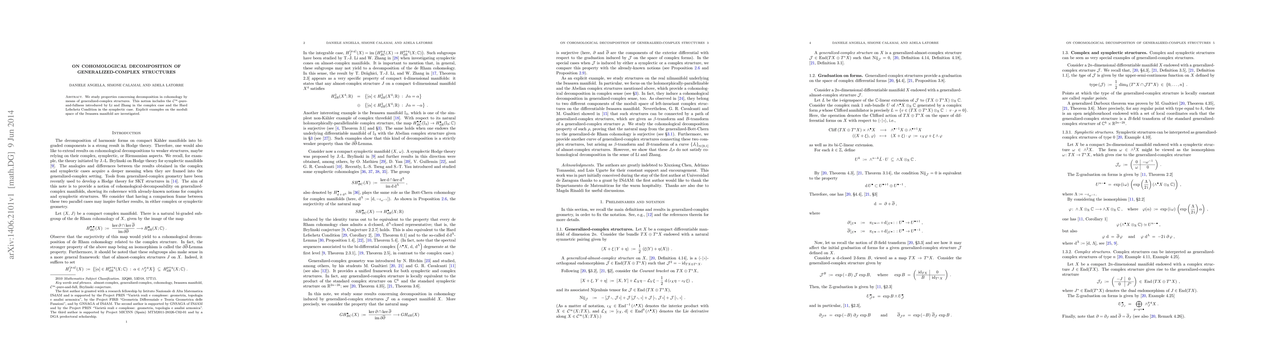 The paper investigates the cohomological decomposition properties of generalized-complex structures, introducing concepts like $\mathcal{C}^\infty$-pure-and-fullness and the Hard Lefschetz Condition, and provides explicit examples on the moduli space of the Iwasawa manifold.