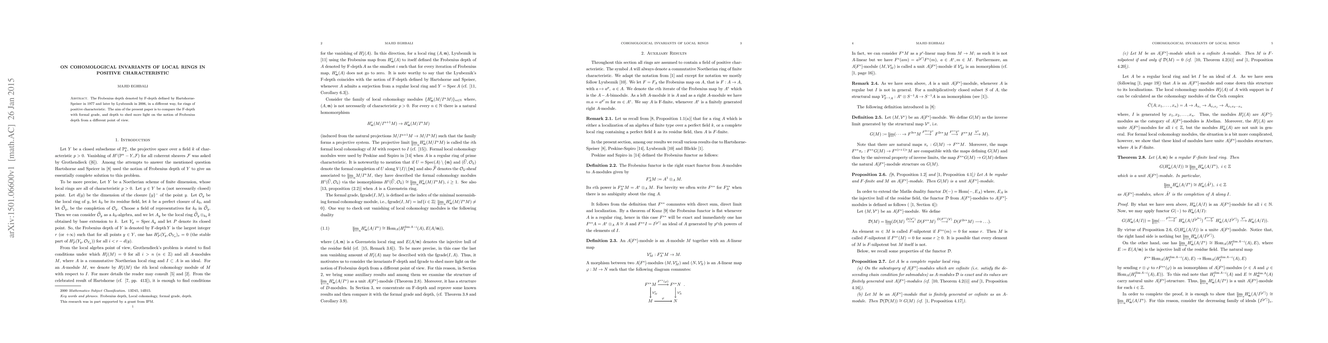 The Frobenius depth denoted by $\Fdepth$ defined by Hartshorne-Speiser in 1977 and later by Lyubeznik in 2006, in a different way, for rings of positive characteristic. The aim of the present paper is to compare the $\Fdepth$ with formal grade, and $\depth$ to shed more light on the notion of Frobenius depth from a different point of view.