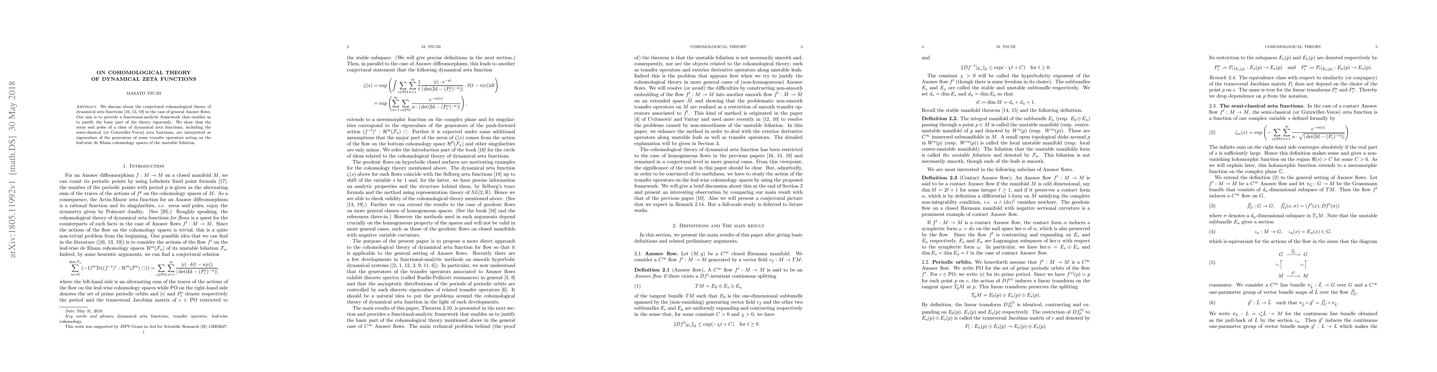 This paper proposes a cohomological theory for dynamical zeta functions in the context of general Anosov flows, establishing a functional-analytic framework to rigorously justify the theory. It demonstrates that the zeros and poles of these zeta functions correspond to eigenvalues of transfer operators acting on the leaf-wise de Rham cohomology spaces of the unstable foliation.