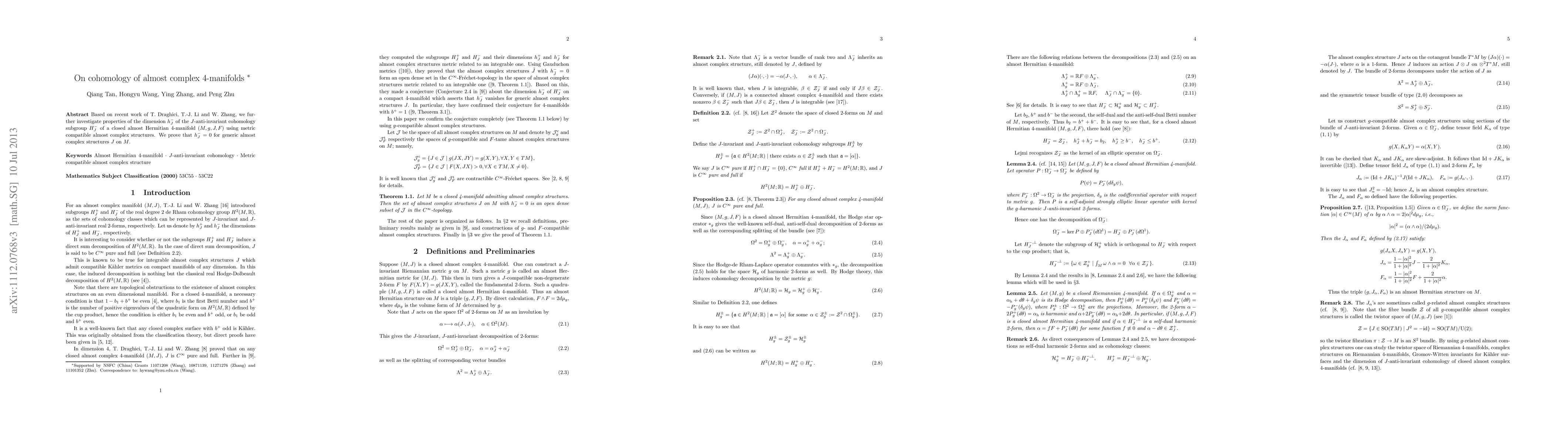 Researchers prove that the cohomology dimension of almost complex 4-manifolds is zero for generic structures, a significant finding with implications for our understanding of these geometric objects.