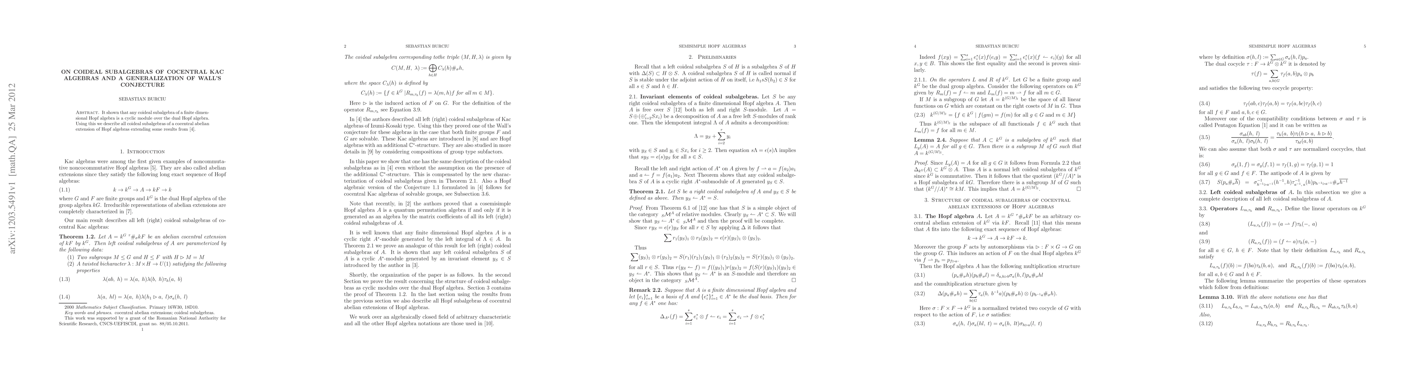 A study reveals that coideal subalgebras of finite dimensional Hopf algebras are cyclic modules over the dual Hopf algebra. This generalization extends a previous conjecture by Wall.