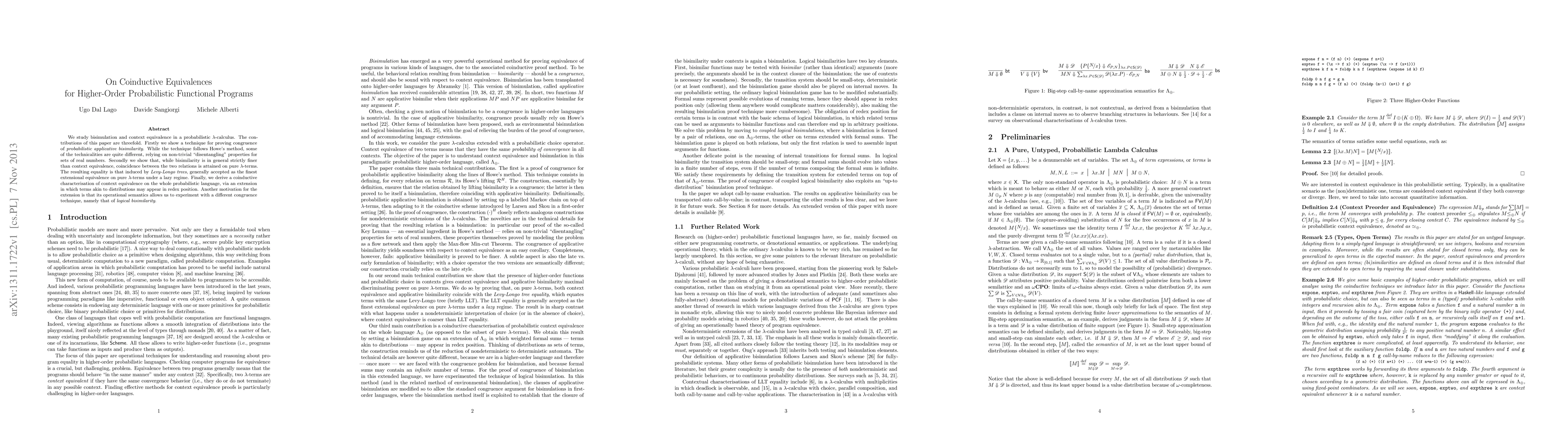 Researchers developed a new method to prove congruence of probabilistic applicative bisimilarity in lambda calculus, showing that bisimulation is finer than context equivalence but coincides on pure lambda-terms, and deriving a coinductive characterisation of context equivalence for the entire language.
