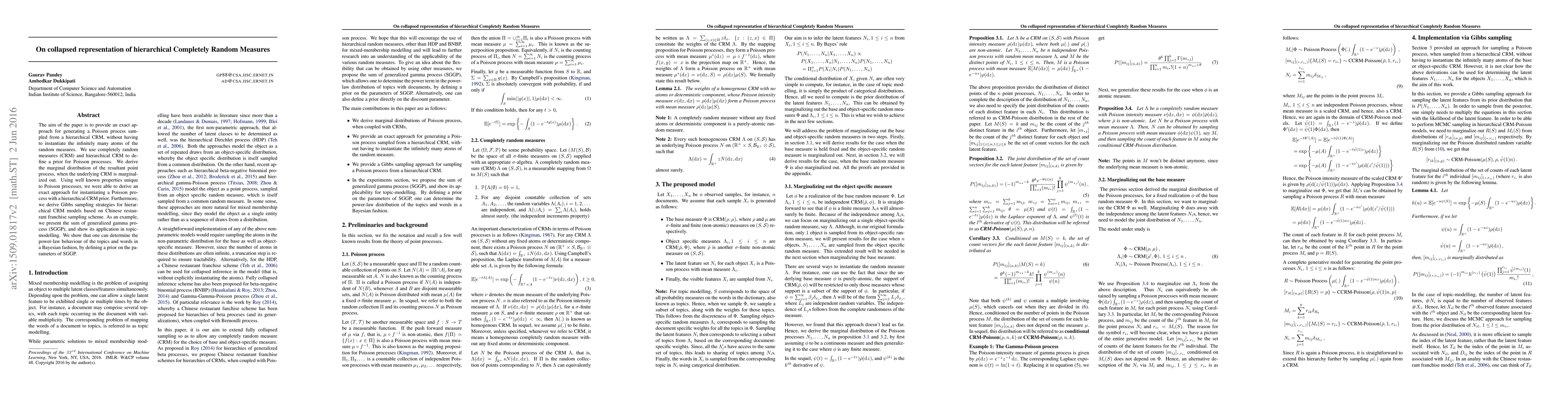 This research paper provides an exact approach to generate Poisson processes with hierarchical Completely Random Measures (CRM) priors without instantiating infinite atoms, and introduces Gibbs sampling strategies for CRM models using the Chinese restaurant franchise method.