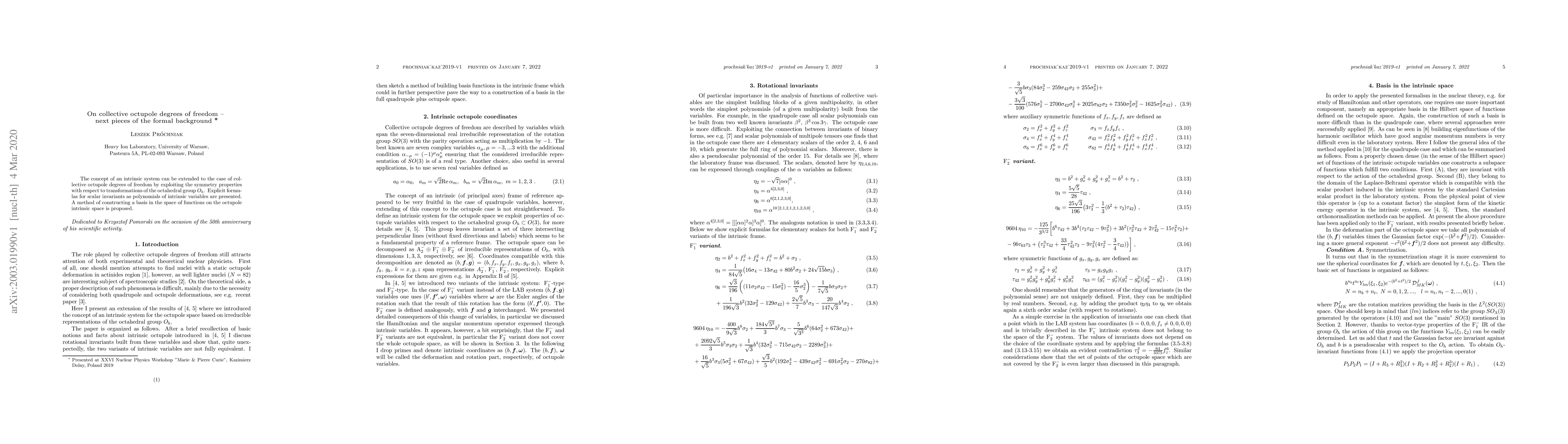 The concept of an intrinsic system can be extended to the case of collective octupole degrees of freedom by exploiting the symmetry properties with respect to transformations of the octahedral group O_h. Explicit formulas for scalar invariants as polynomials of intrinsic variables are presented. A method of constructing a basis in the space of functions on the octupole intrinsic space is proposed.