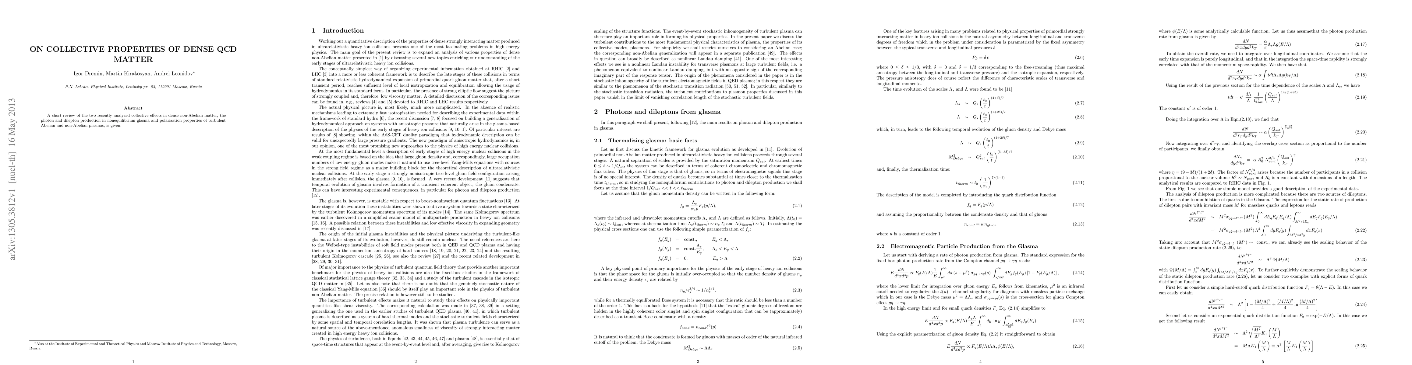 Researchers studied collective effects in dense quantum chromodynamics (QCD) matter, including photon and dilepton production and plasma polarization properties, to understand its behavior in nonequilibrium conditions.
