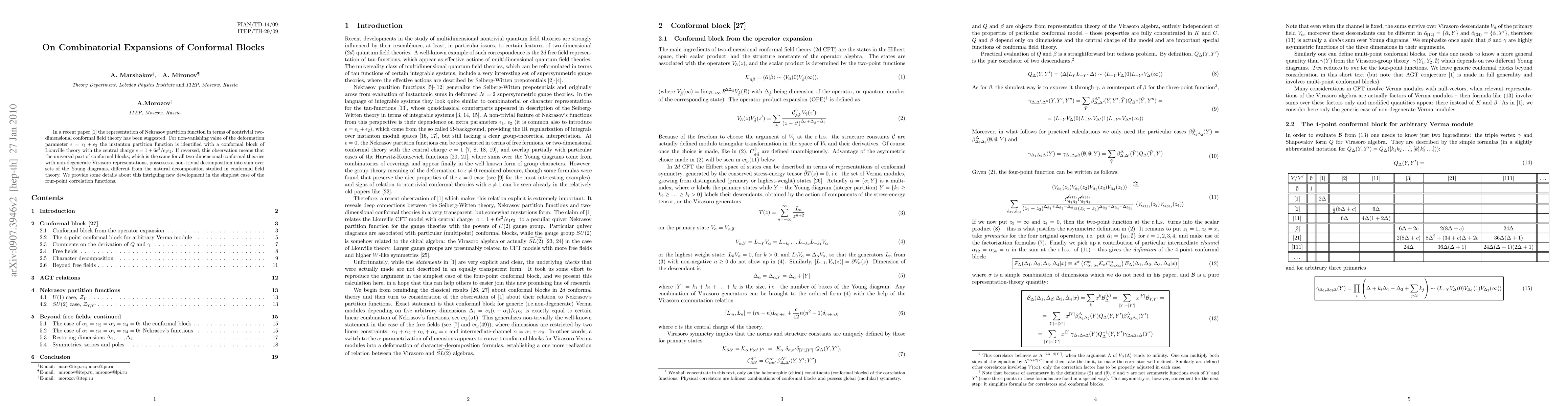 Researchers found that conformal blocks in two-dimensional conformal field theory can be decomposed into a sum over Young diagrams, adding new insights to the study of conformal blocks and universal parts of conformal theories.