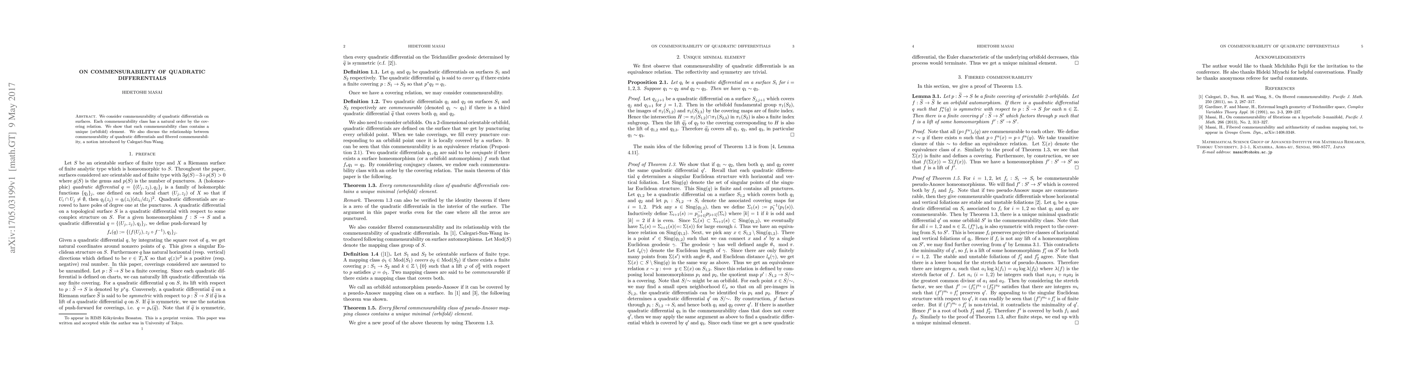 This paper investigates the commensurability classes of quadratic differentials on surfaces, establishing that each class possesses a unique representative and explores the connection between this concept and fibered commensurability as defined by Calegari-Sun-Wang.