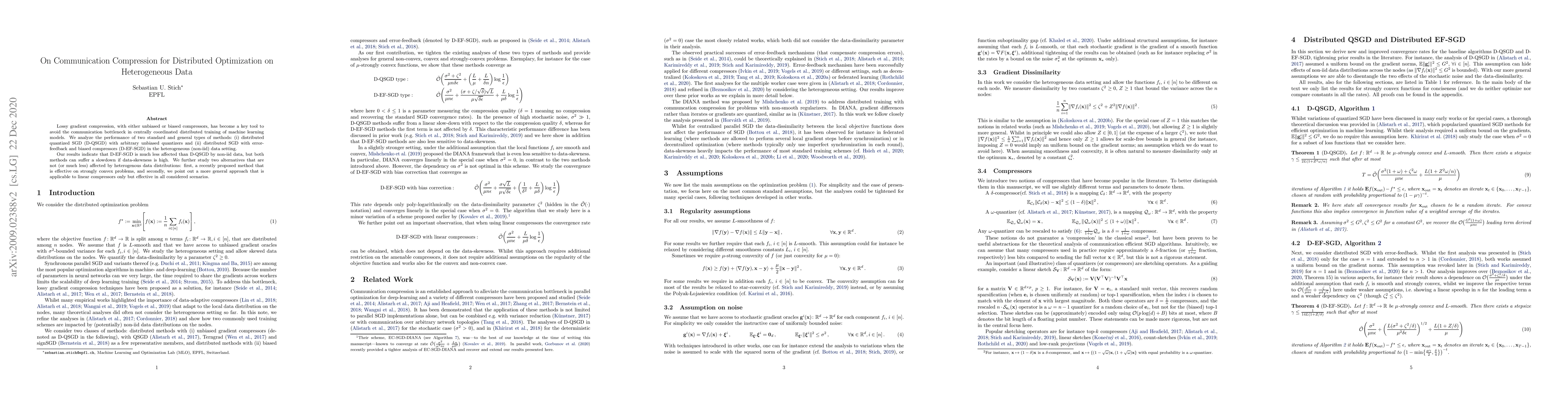 This paper analyzes lossy gradient compression techniques for distributed optimization in heterogeneous data settings, comparing distributed quantized SGD (D-QSGD) and distributed SGD with error-feedback and biased compressors (D-EF-SGD). The study finds that D-EF-SGD is less affected by non-iid data, while both methods suffer from high data-skewness. The paper also introduces alternative methods less impacted by heterogeneous data distributions.