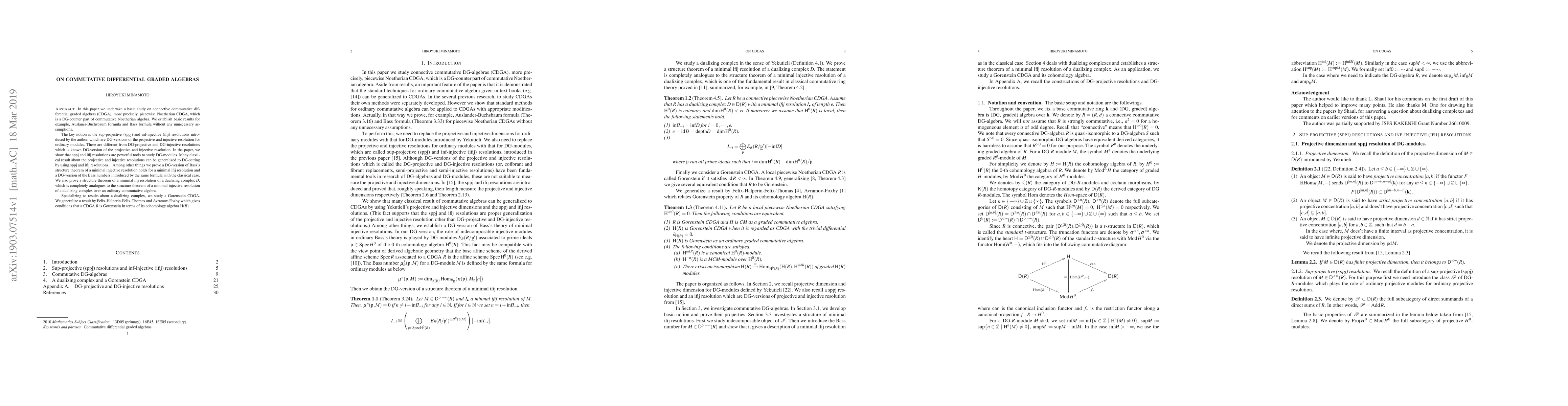 This paper investigates commutative differential graded algebras (CDGA), establishing Auslaner-Buchsbaum formula and Bass formula without assumptions, and generalizing classical results using sup-projective and inf-injective resolutions.
