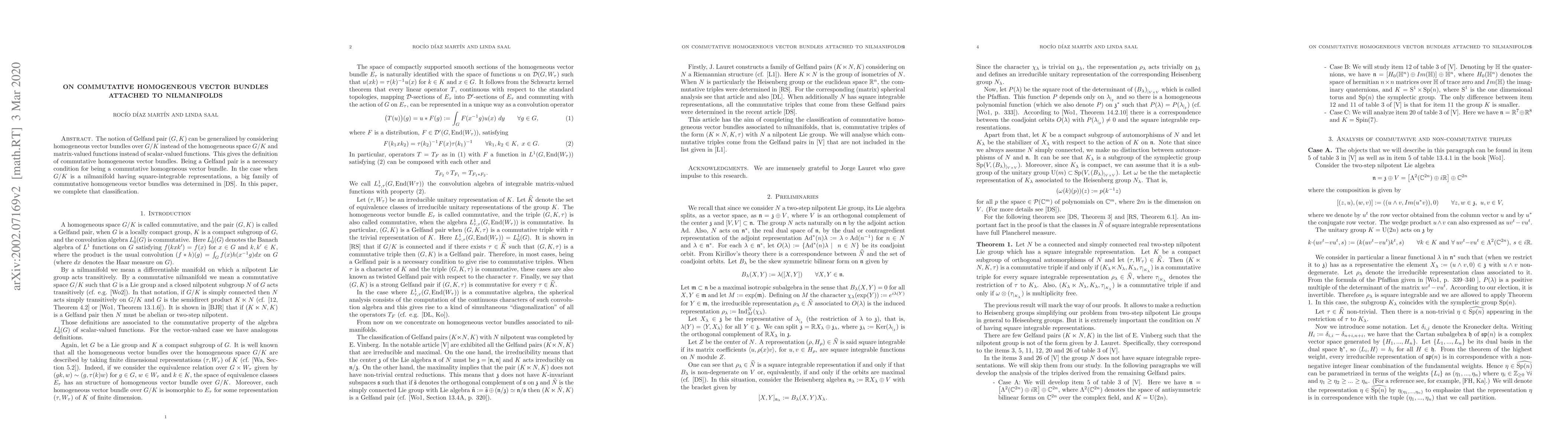 This paper extends Gelfand pairs to commutative homogeneous vector bundles over nilmanifolds, providing a classification of such bundles that completes previous research findings.