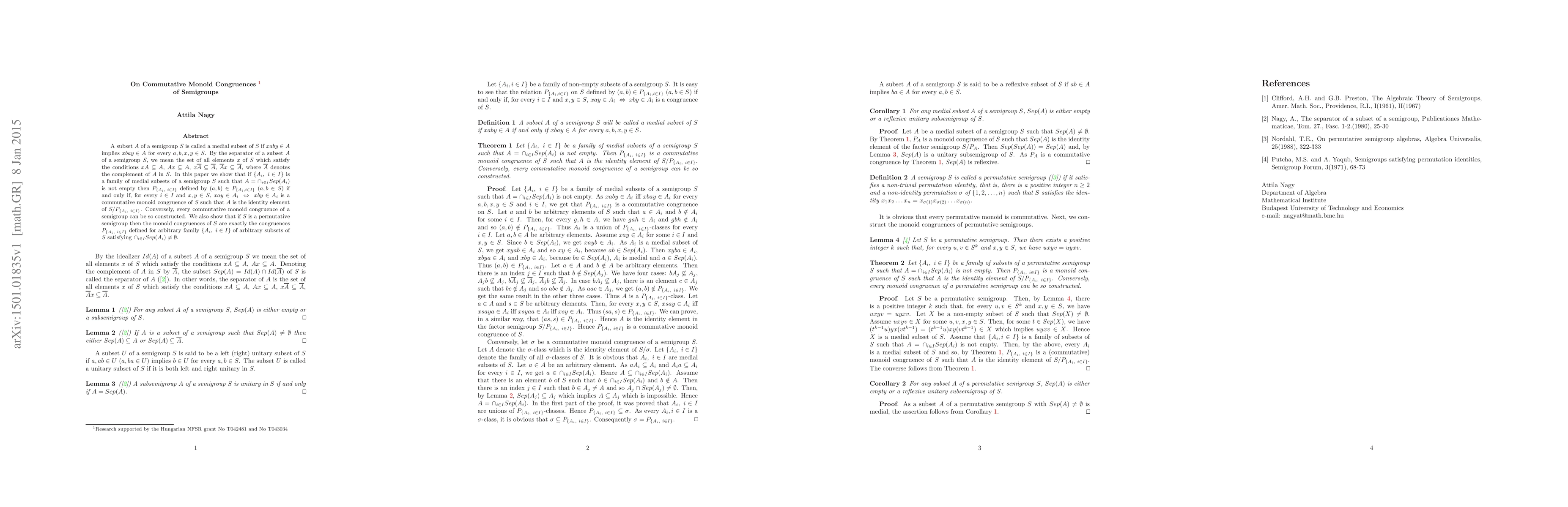 This paper explores the construction of commutative monoid congruences in semigroups using medial subsets, demonstrating how these subsets can define the desired congruences.