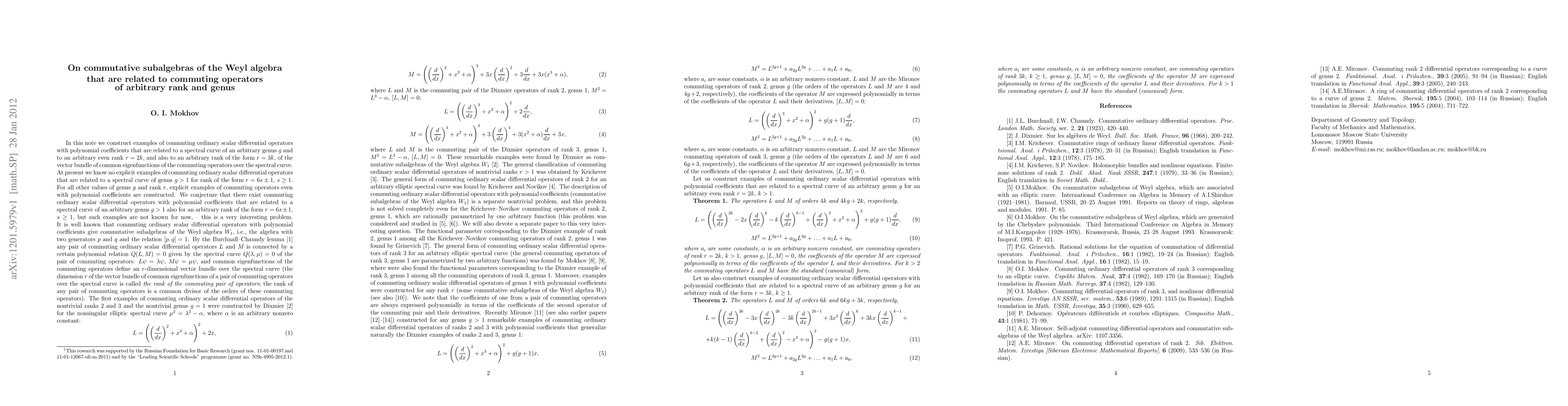 Summary: This paper constructs examples of commuting differential operators with polynomial coefficients linked to spectral curves of any genus and ranks of 2k or 3k, associated with the vector bundle of common eigenfunctions over these curves. The focus is on commutative subalgebras of the Weyl algebra.