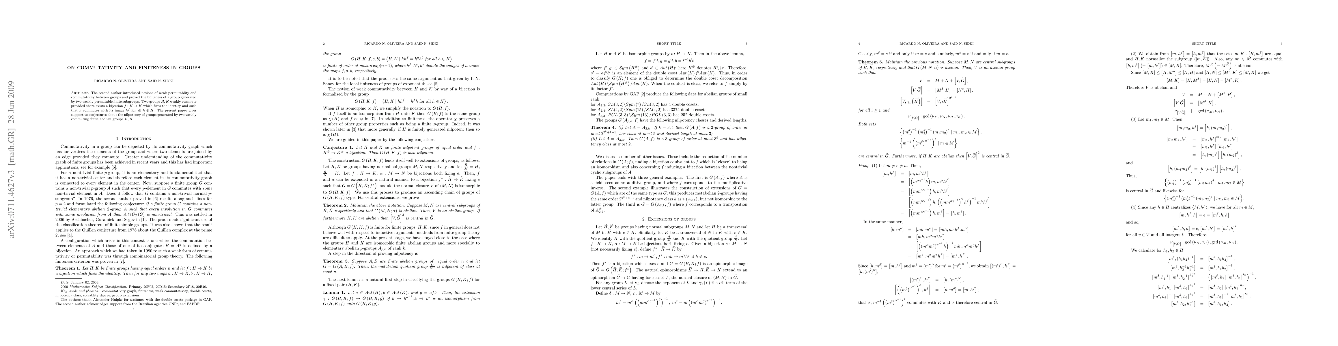 This paper explores the notions of weak permutability and commutativity between groups, proving the finiteness of a group generated by two such weakly permutable finite groups and supporting conjectures about the nilpotency of groups formed by two weakly commuting finite abelian groups.