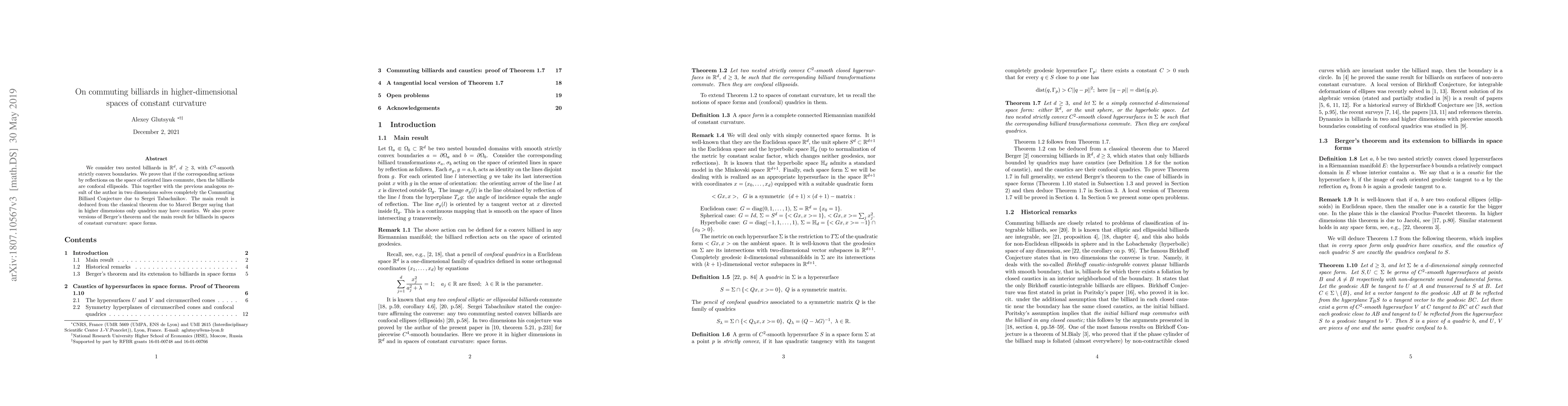 We consider two nested billiards in $\mathbb R^d$, $d\geq3$, with $C^2$-smooth strictly convex boundaries. We prove that if the corresponding actions by reflections on the space of oriented lines commute, then the billiards are confocal ellipsoids. This together with the previous analogous result of the author in two dimensions solves completely the Commuting Billiard Conjecture due to Sergei Tabachnikov. The main result is deduced from the classical theorem due to Marcel Berger saying that in higher dimensions only quadrics may have caustics. We also prove versions of Berger's theorem and the main result for billiards in spaces of constant curvature: space forms.