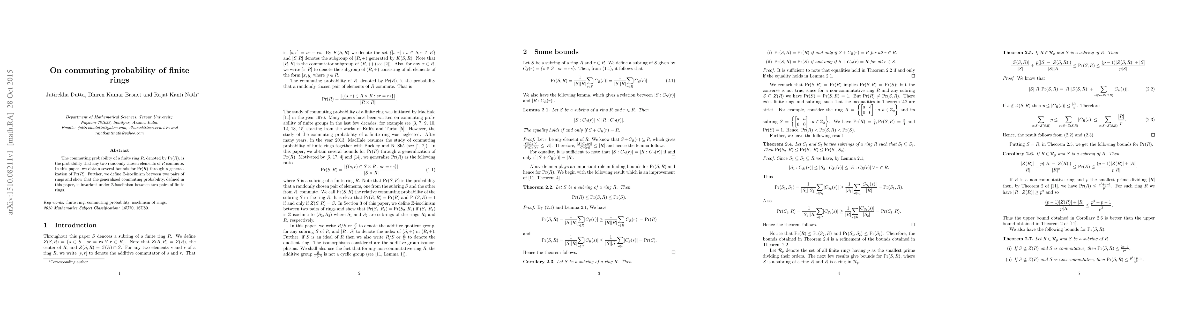 This research contributes to understanding the commuting behavior in finite rings, which has applications in group theory and abstract algebra, and provides new insights into the commuting probability's invariance under Z-isoclinism.