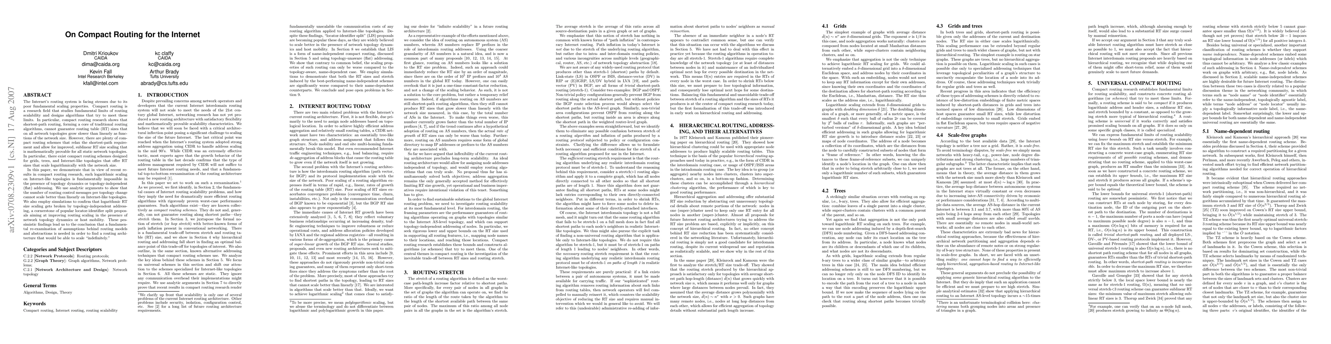 This paper argues that achieving logarithmic scaling of routing tables in Internet-like topologies is impossible due to topology dynamics and flat addressing. The authors demonstrate through analytic arguments and simulations that routing control messages must scale linearly, challenging existing compact routing models and suggesting a need for a fundamental re-evaluation of routing assumptions.