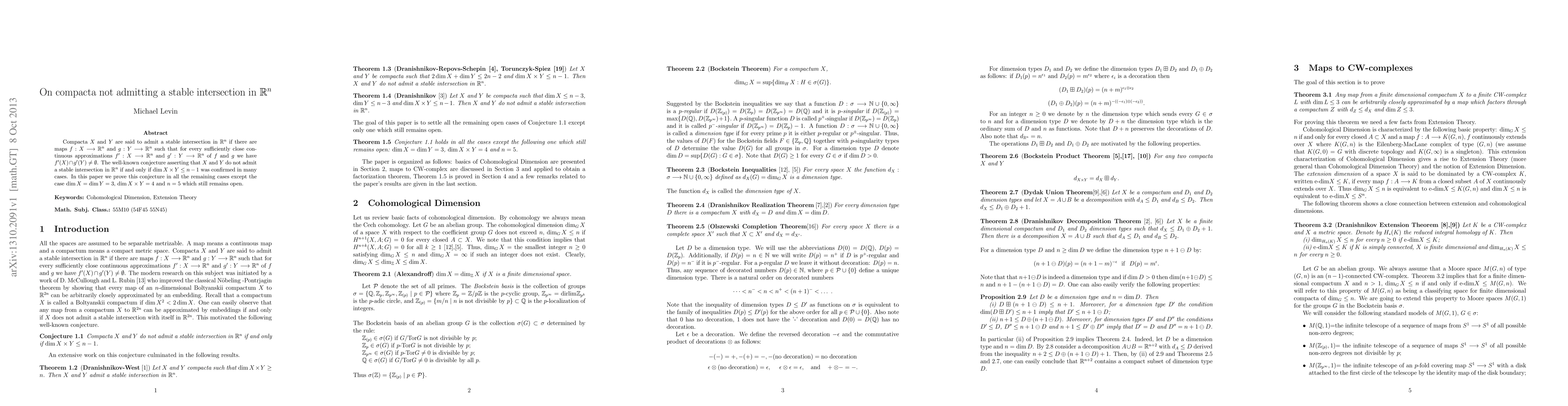 This paper confirms the conjecture that compacta X and Y do not admit a stable intersection in R^n if and only if the product of their dimensions is less than or equal to n-1, except for the specific case where both have dimension 3, their product dimension is 4, and n equals 5, which remains unresolved.