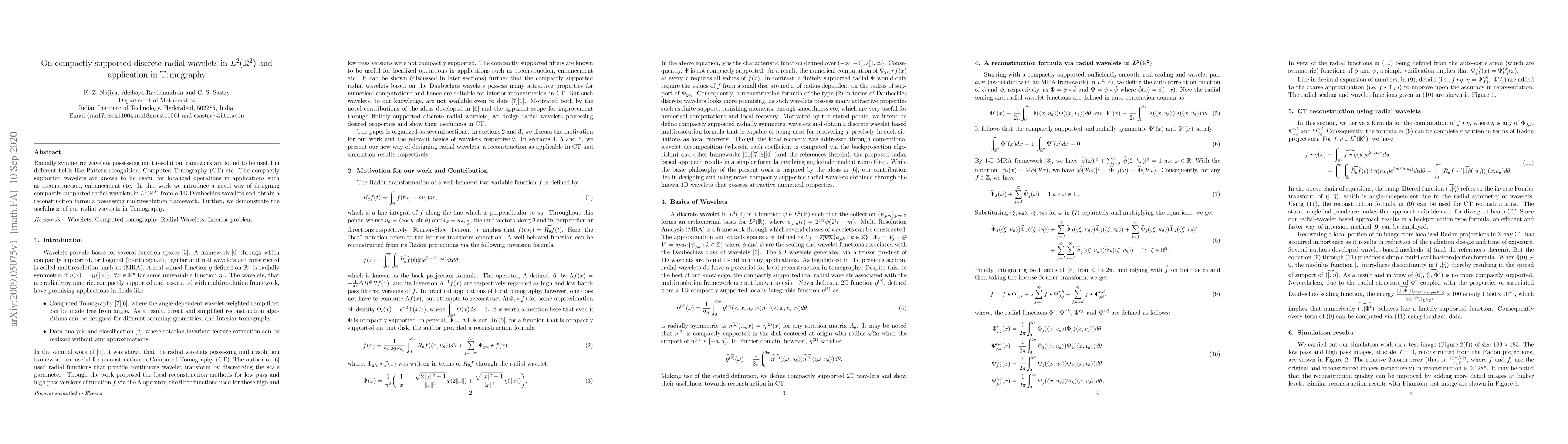 This paper introduces a method to design compactly supported radial wavelets in $L^2(\mathbb{R}^2)$ derived from 1D Daubechies wavelets, and presents a multiresolution reconstruction formula. The proposed wavelets are shown to be effective in computed tomography applications.