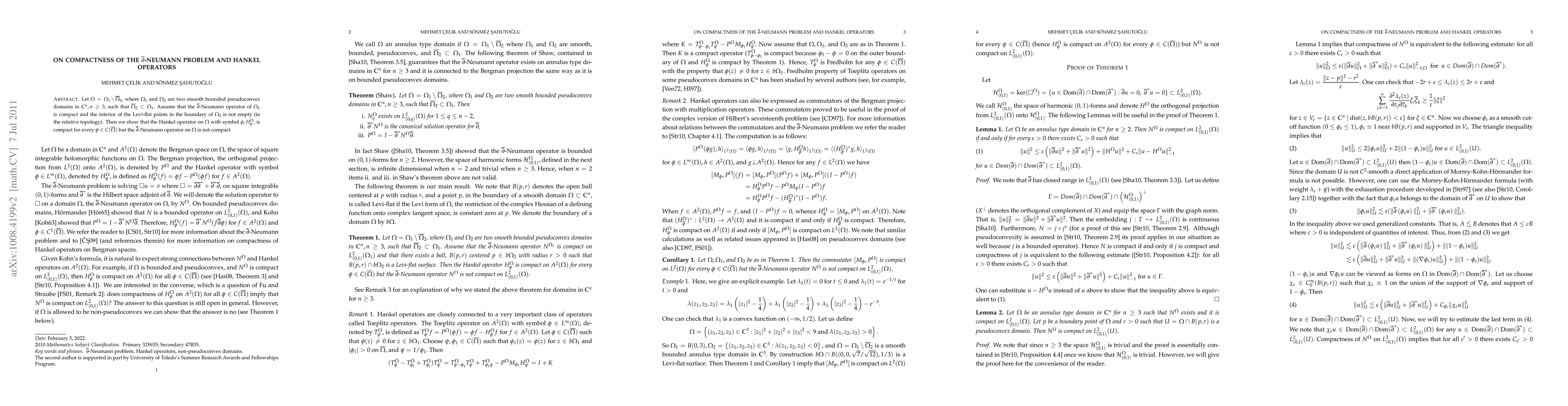 Let $\D=\D_1\setminus \Dc_2$, where $\D_1$ and $\D_2$ are two smooth bounded pseudoconvex domains in $\C^n, n\geq 3,$ such that $\Dc_2\subset \D_1.$ Assume that the $\dbar$-Neumann operator of $\D_1$ is compact and the interior of the Levi-flat points in the boundary of $\D_2$ is not empty (in the relative topology). Then we show that the Hankel operator on $\D$ with symbol $\phi, H^{\D}_{\phi},$ is compact for every $\phi\in C(\Dc)$ but the $\dbar$-Neumann operator on $\D$ is not compact.