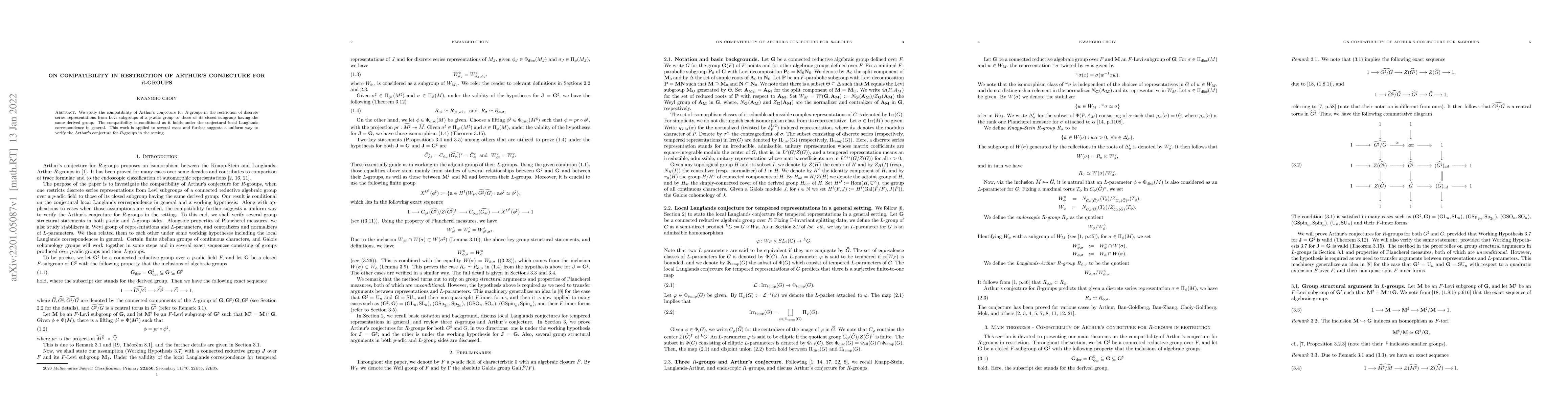 We study the compatibility of Arthur's conjecture for $R$-groups in the restriction of discrete series representations from Levi subgroups of a $p$-adic group to those of its closed subgroup having the same derived group. The compatibility is conditional as it holds under the conjectural local Langlands correspondence in general. This work is applied to several cases and further suggests a uniform way to verify the Arthur's conjecture for $R$-groups in the setting.