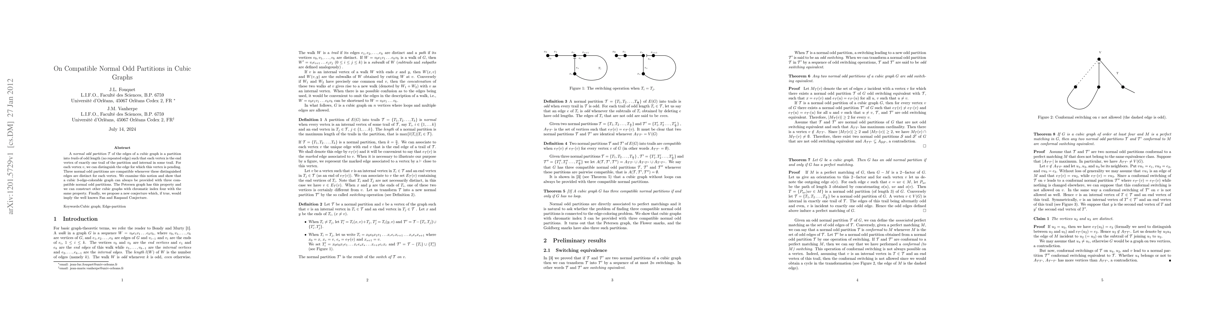This research explores normal odd partitions in cubic graphs, showing that a cubic 3-edge-colorable graph can always have three compatible normal odd partitions. The Petersen graph exemplifies this, and other cubic graphs with chromatic index four also possess this property. The study concludes with a new conjecture that, if proven, would support the Fan and Raspaud Conjecture.