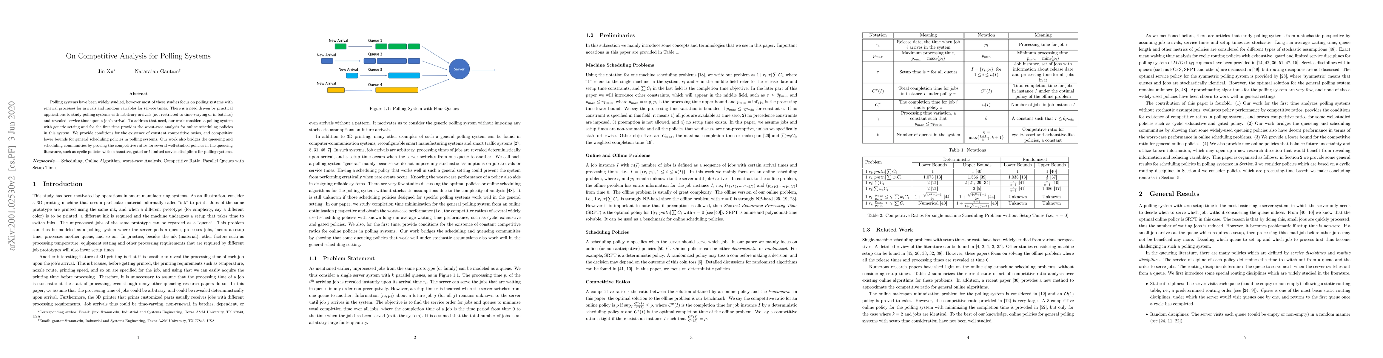 This paper studies polling systems with arbitrary arrivals and revealed service times, offering the first worst-case analysis for online scheduling policies. It establishes conditions for the existence of constant competitive ratios and competitive lower bounds for general scheduling policies, bridging queueing and scheduling communities.
