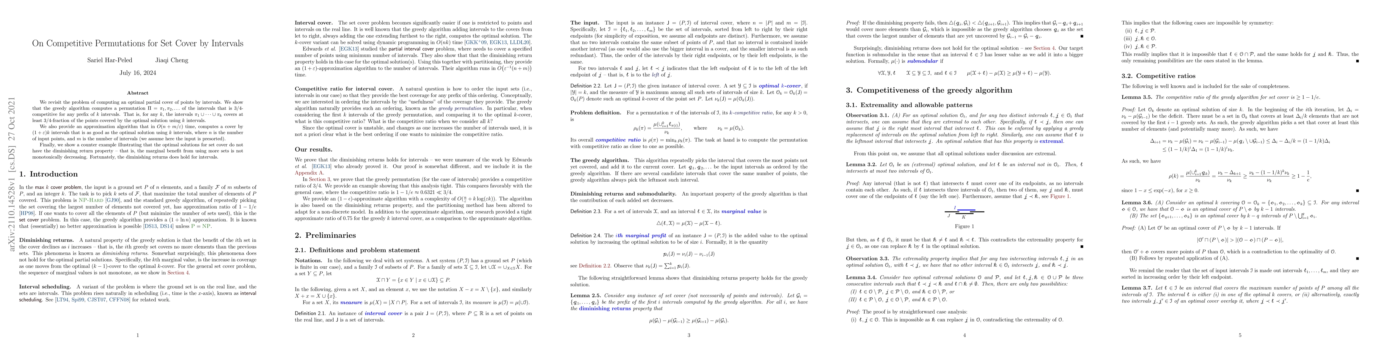 We revisit the problem of computing an optimal partial cover of points by intervals. We show that the greedy algorithm computes a permutation $\Pi = \pi_1, \pi_2,\ldots$ of the intervals that is $3/4$-competitive for any prefix of $k$ intervals. That is, for any $k$, the intervals $\pi_1 \cup \cdots \cup \pi_k$ covers at least $3/4$-fraction of the points covered by the optimal solution using $k$ intervals. We also provide an approximation algorithm that, in $O(n + m/\varepsilon)$ time, computes a cover by $(1+\varepsilon)k$ intervals that is as good as the optimal solution using $k$ intervals, where $n$ is the number of input points, and $m$ is the number of intervals (we assume here the input is presorted). Finally, we show a counter example illustrating that the optimal solutions for set cover do not have the diminishing return property -- that is, the marginal benefit from using more sets is not monotonically decreasing. Fortunately, the diminishing returns does hold for intervals.