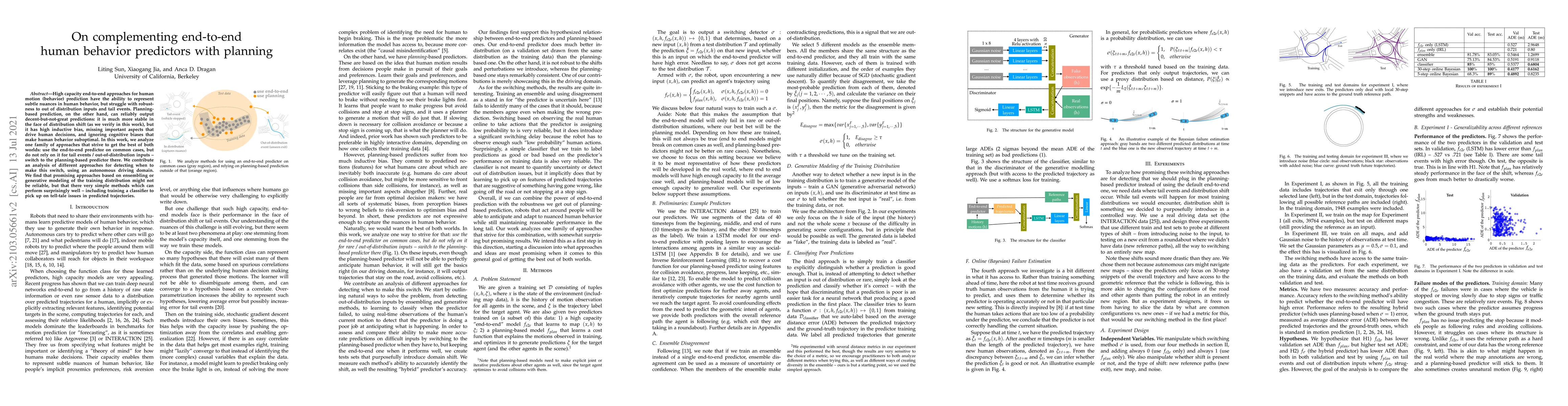 High capacity end-to-end approaches for human motion (behavior) prediction have the ability to represent subtle nuances in human behavior, but struggle with robustness to out of distribution inputs and tail events. Planning-based prediction, on the other hand, can reliably output decent-but-not-great predictions: it is much more stable in the face of distribution shift (as we verify in this work), but it has high inductive bias, missing important aspects that drive human decisions, and ignoring cognitive biases that make human behavior suboptimal. In this work, we analyze one family of approaches that strive to get the best of both worlds: use the end-to-end predictor on common cases, but do not rely on it for tail events / out-of-distribution inputs -- switch to the planning-based predictor there. We contribute an analysis of different approaches for detecting when to make this switch, using an autonomous driving domain. We find that promising approaches based on ensembling or generative modeling of the training distribution might not be reliable, but that there very simple methods which can perform surprisingly well -- including training a classifier to pick up on tell-tale issues in predicted trajectories.
